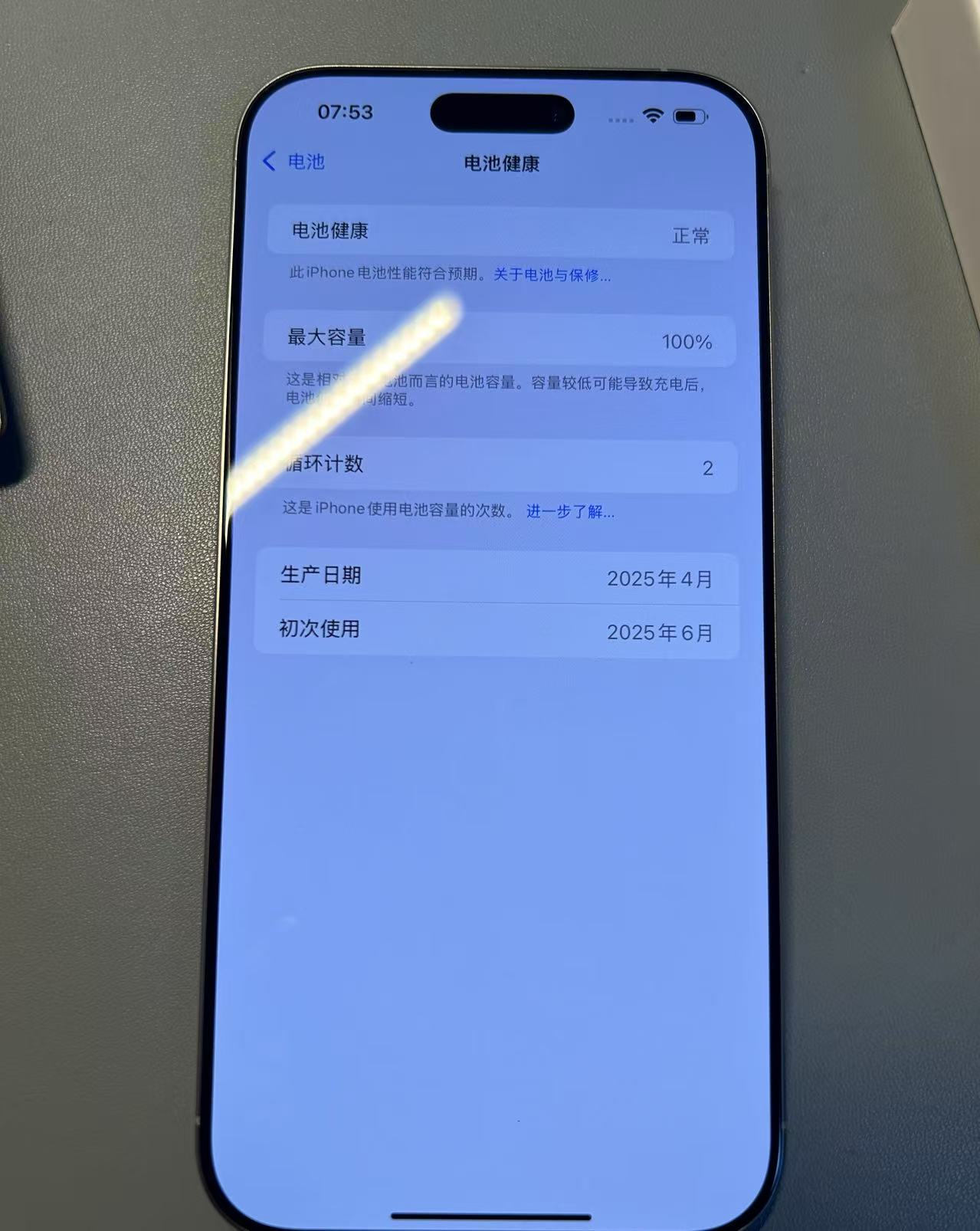 你看到的 iPhone 16 Pro Max 新机激活后电池循环次数是 2 次,虽然和“理论上的 0 次”不一样,但这其实是完全正常的情况,下面给你详细解释原因。