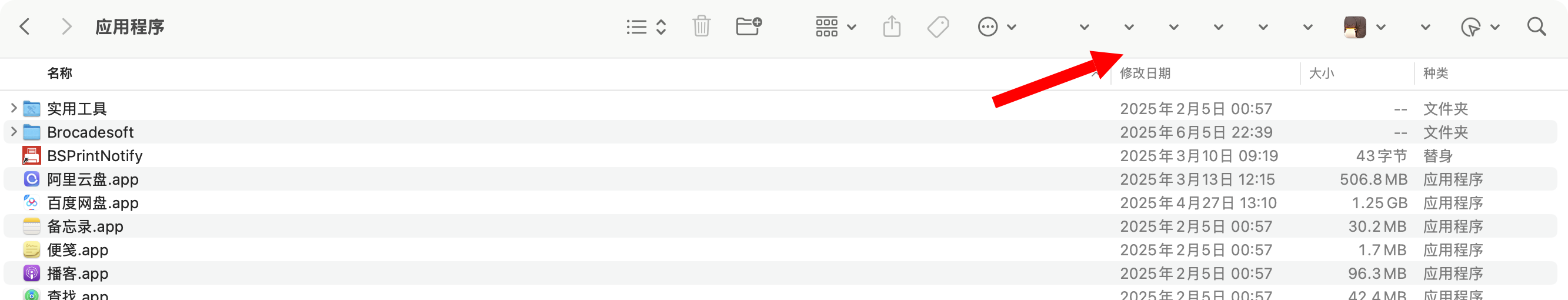 不知道是否与软件卸载有关,访达界面工具栏右上角有部分下箭头图标无法点开,也无法删除。