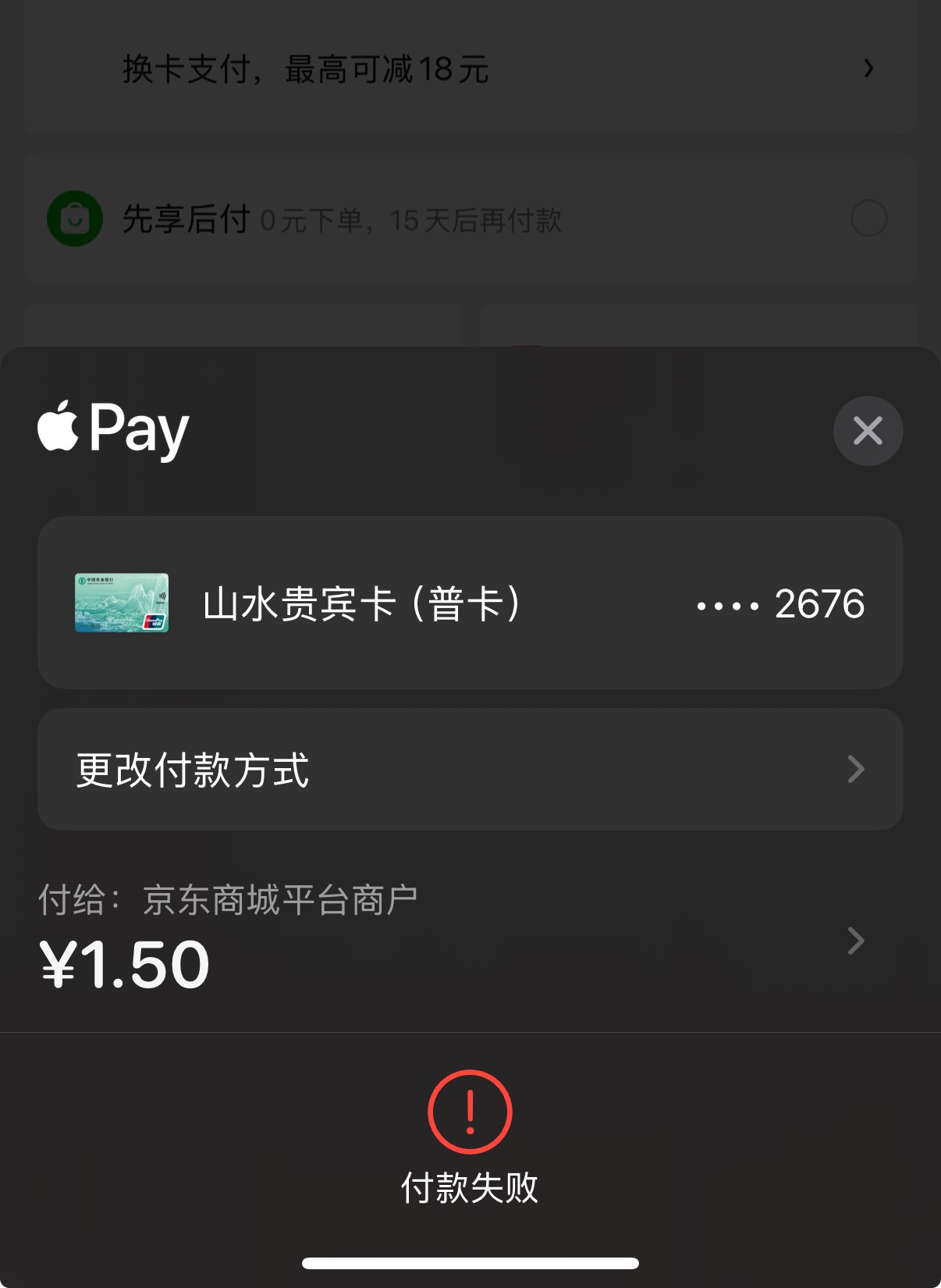 iPhone 上的 Apple Pay 在 JD 上付款失败是什么问题?