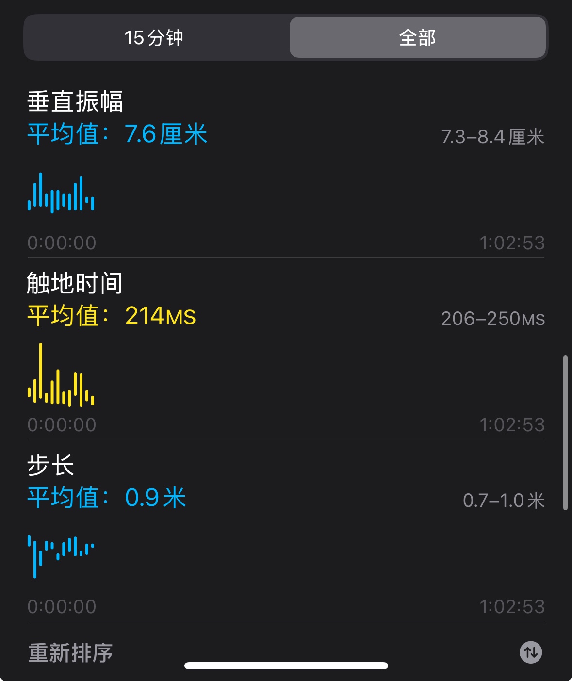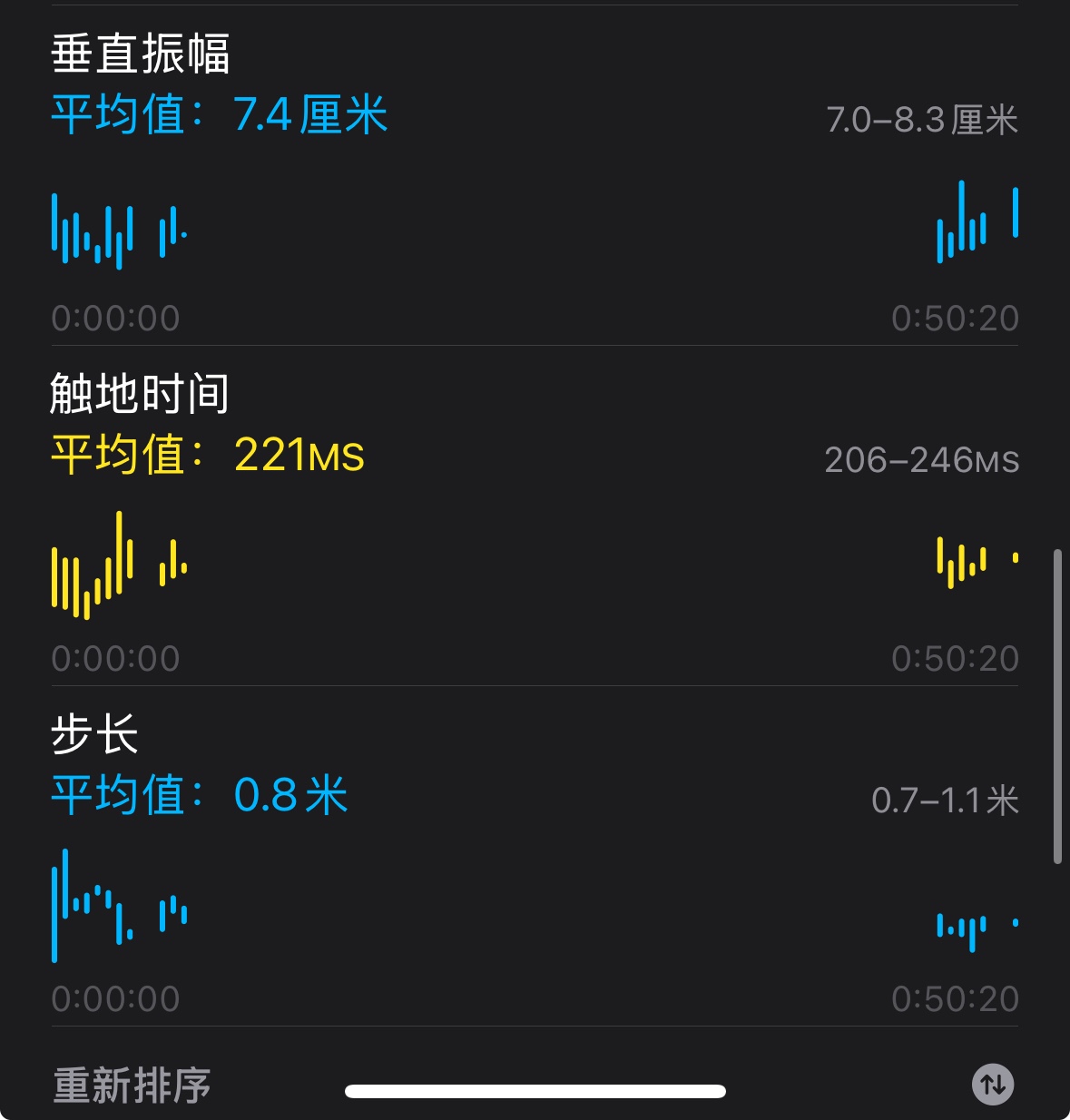 另外对于您提出的“步长、触地时间”等三项数据,建议确认是否在每次同样的使用场景中均会出现问题,还是仅此一次。如果问题频率较高,建议尝试校准Apple Watch后测试:校准 Apple Watch,提高“体能训练”和“健身记录”的数据准确性 - 官方 Apple 支持 (中国)
