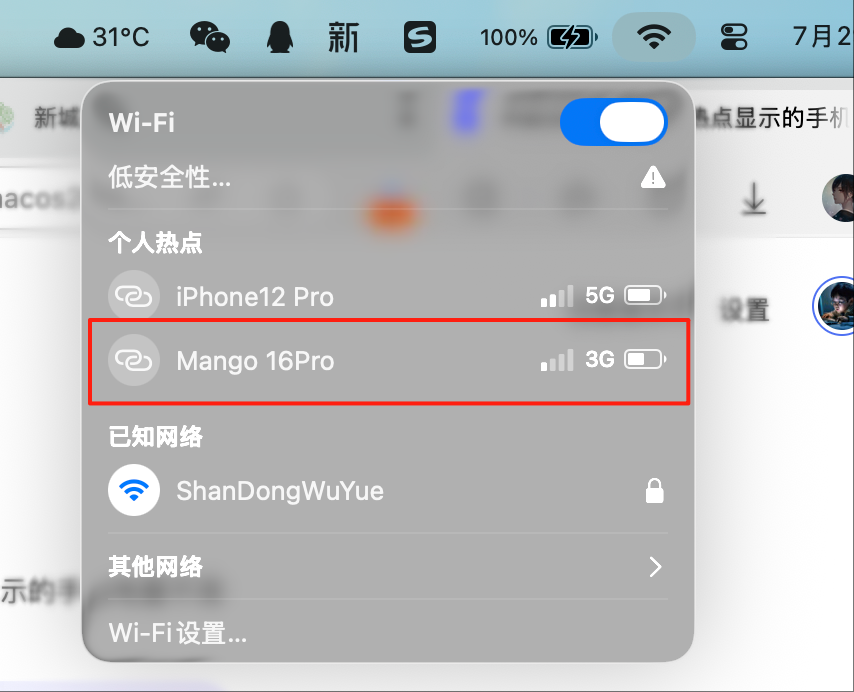 1、从macOS15开始,经常碰到某个版本的系统在对手机热点支持上存在问题,统一版本的系统,手机型号不同也会存在差异,目前的情况