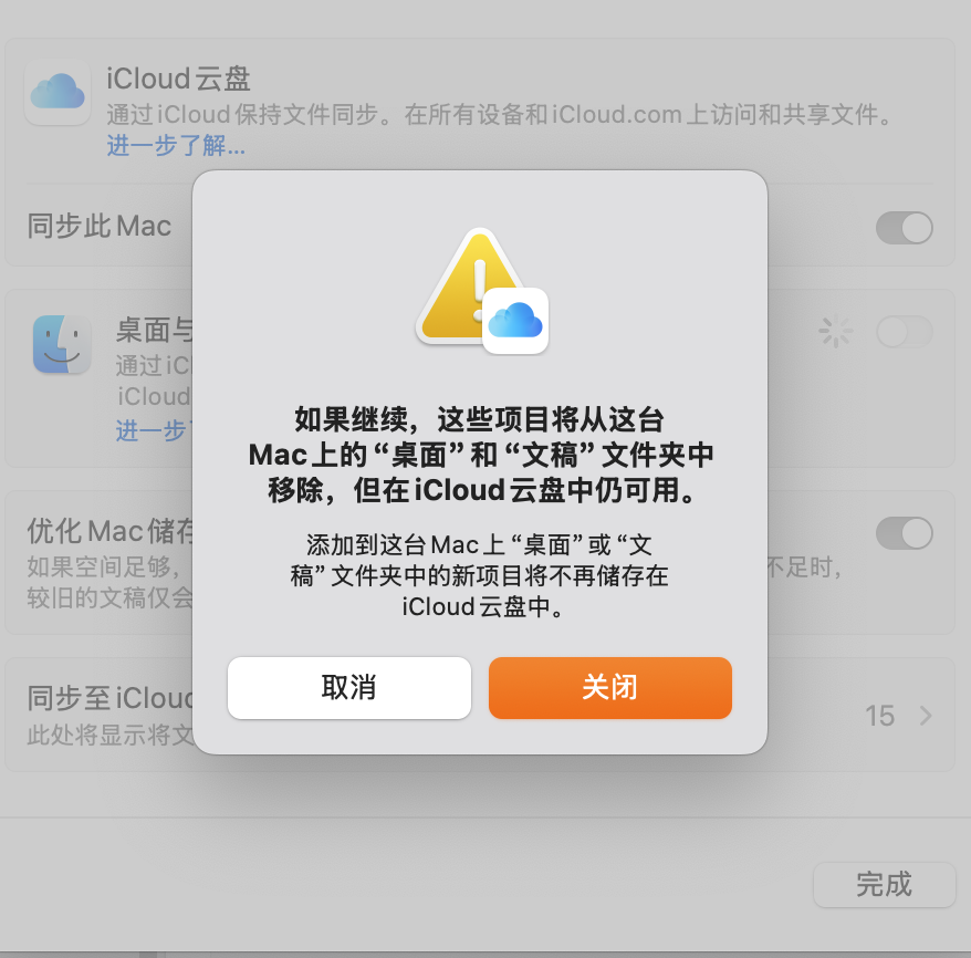 Mac 上的 iCloud 同步桌面和文稿,关闭后桌面文件不显示