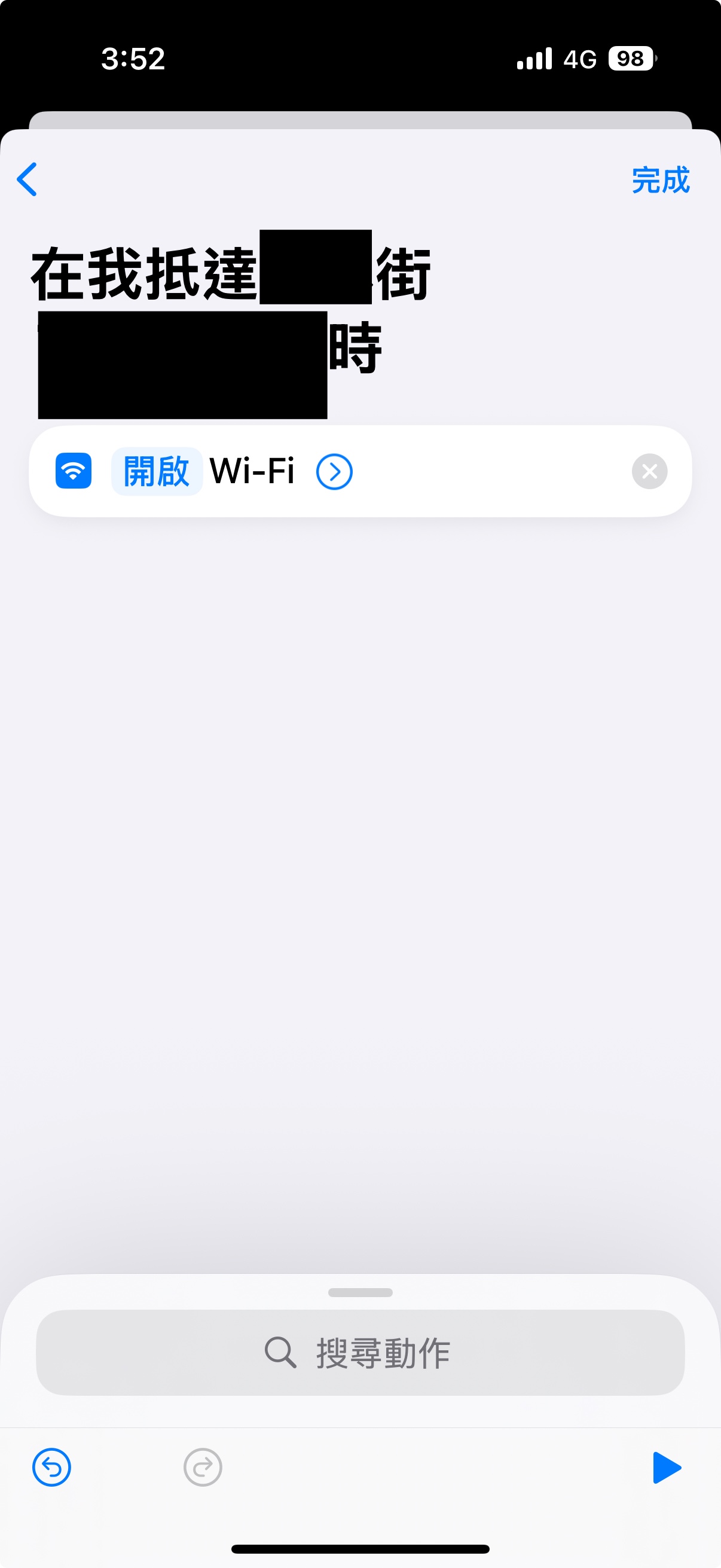Shortcuts 捷徑的自動化,可以設置抵達地點(家裡)自動開啟連上家裡WiFi 的功能。 但是因為4G定位都不準,所以抵達家裡後,一直也無法自動觸發這個功能。