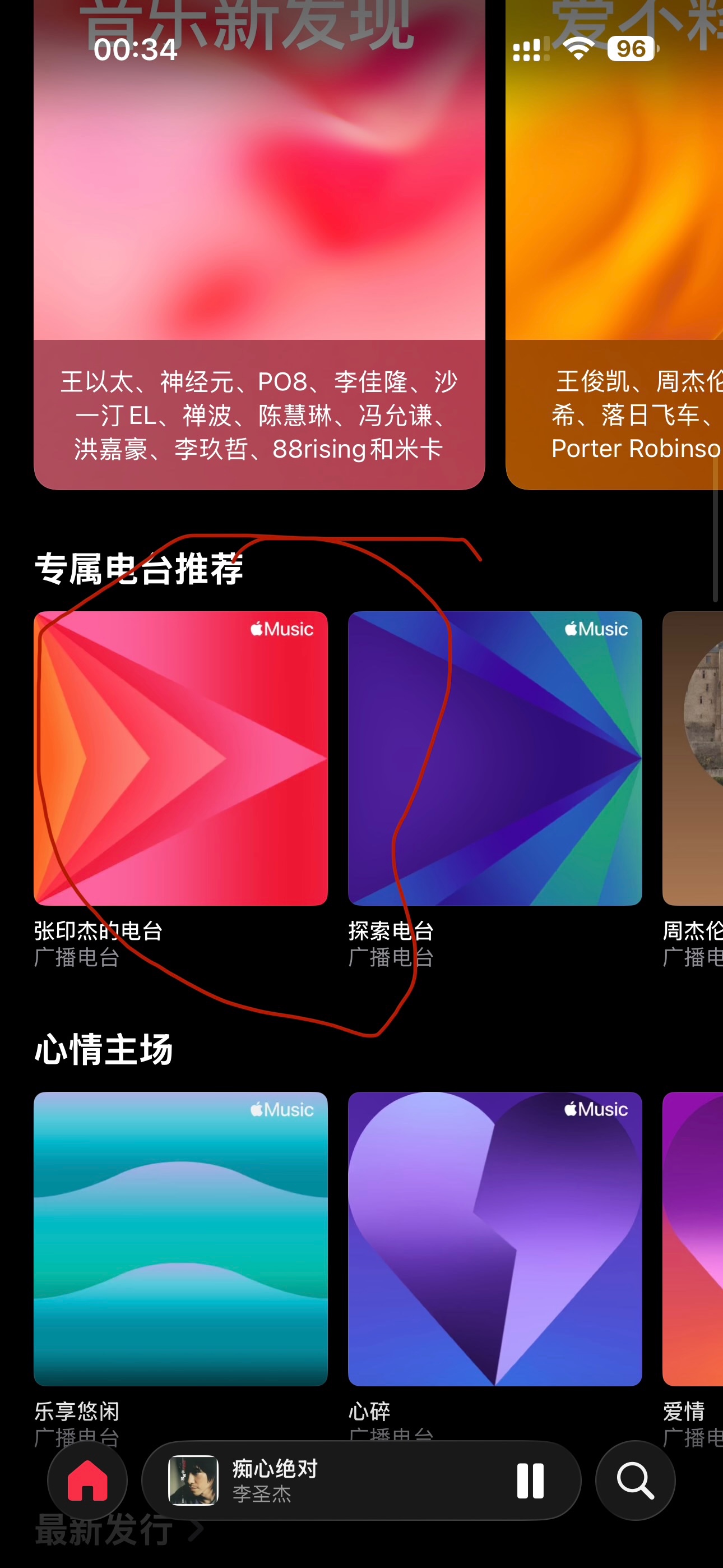 如何将 Apple Music 中的推荐电台添加到 iPhone 的资料库并且置顶