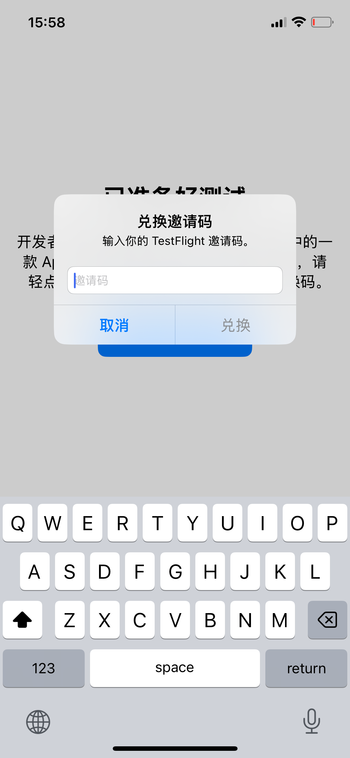 TestFlight是面向开发者下放测试版本(beta版)APP的软件,你需要询问开发者,获取开发者的邀请码(通常是一段由字母和数字组成的随机字符串)。