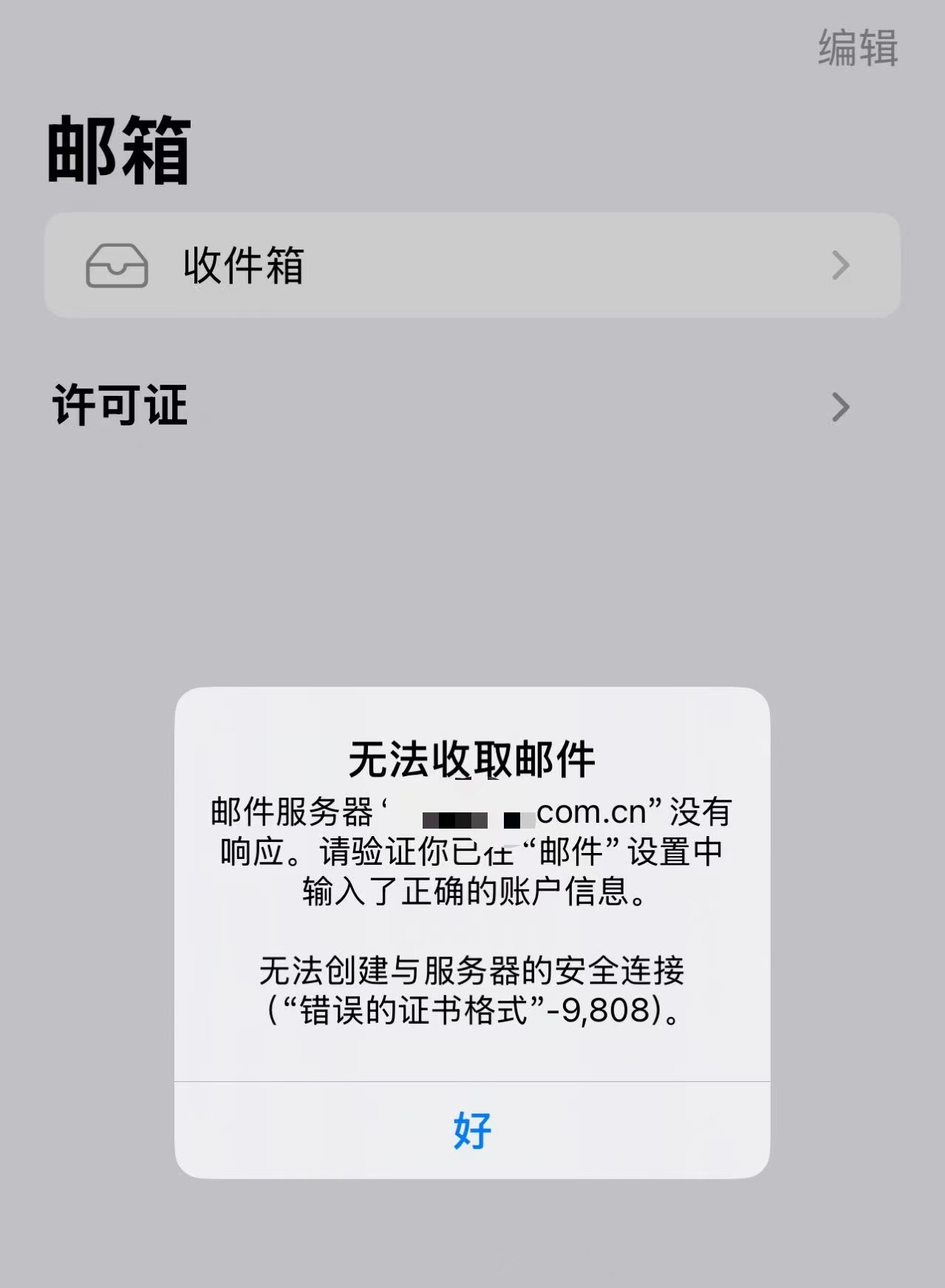 ios18.6邮件APP添加公司Exchange企业邮箱提示证书不可信,点了信任后,收了目前的邮件后提示证书格式错误 -9,808 错误,但是测试了5S用的ios12.5.7还是可以用的