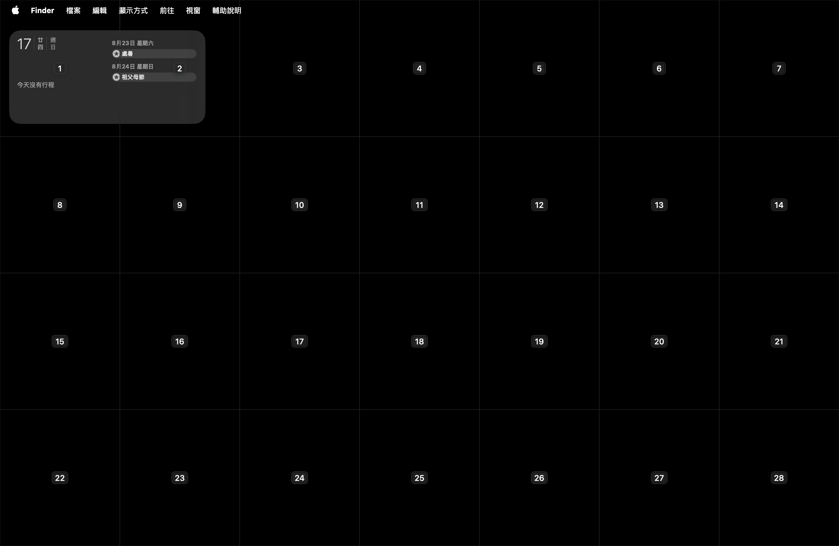 桌面忽然出現格紋狀,共28格,且每一個都會有數字。