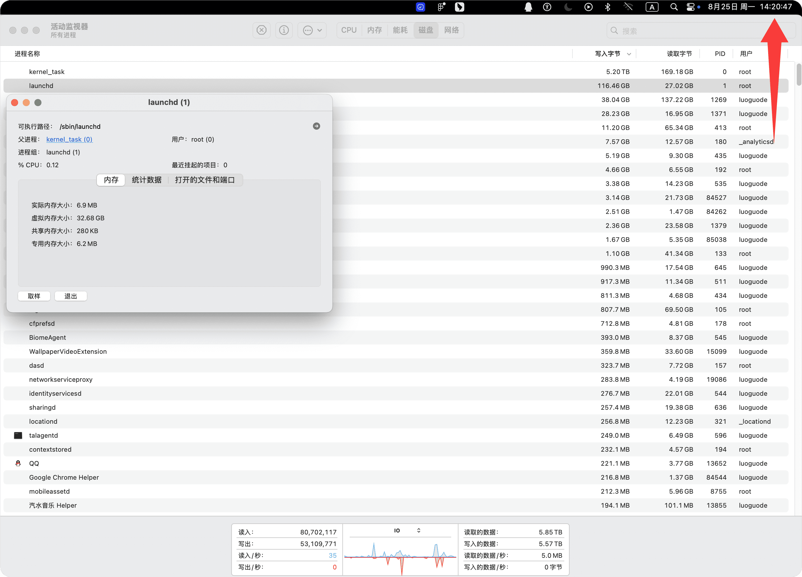 本人使用 iMac Retina 5K, 27-inch, 2020款Apple一体机,在开启“活动监视器”时,会显示一个名为 「kernel_task」、「/sbin/launchd」 的系统进程正在严重占用我的 CPU 资源。平常使用于办公,Chrome、Figma、QQ、钉钉软件。 最高达到 5.20TB 占用CPU (附图01),不知道任何解决优化。