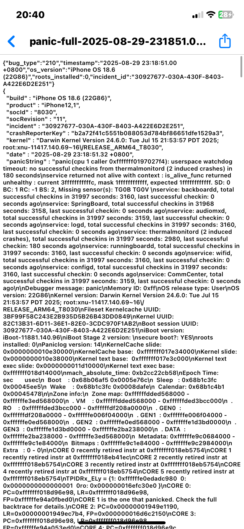 iPhone中userspace watchdog timeout重启