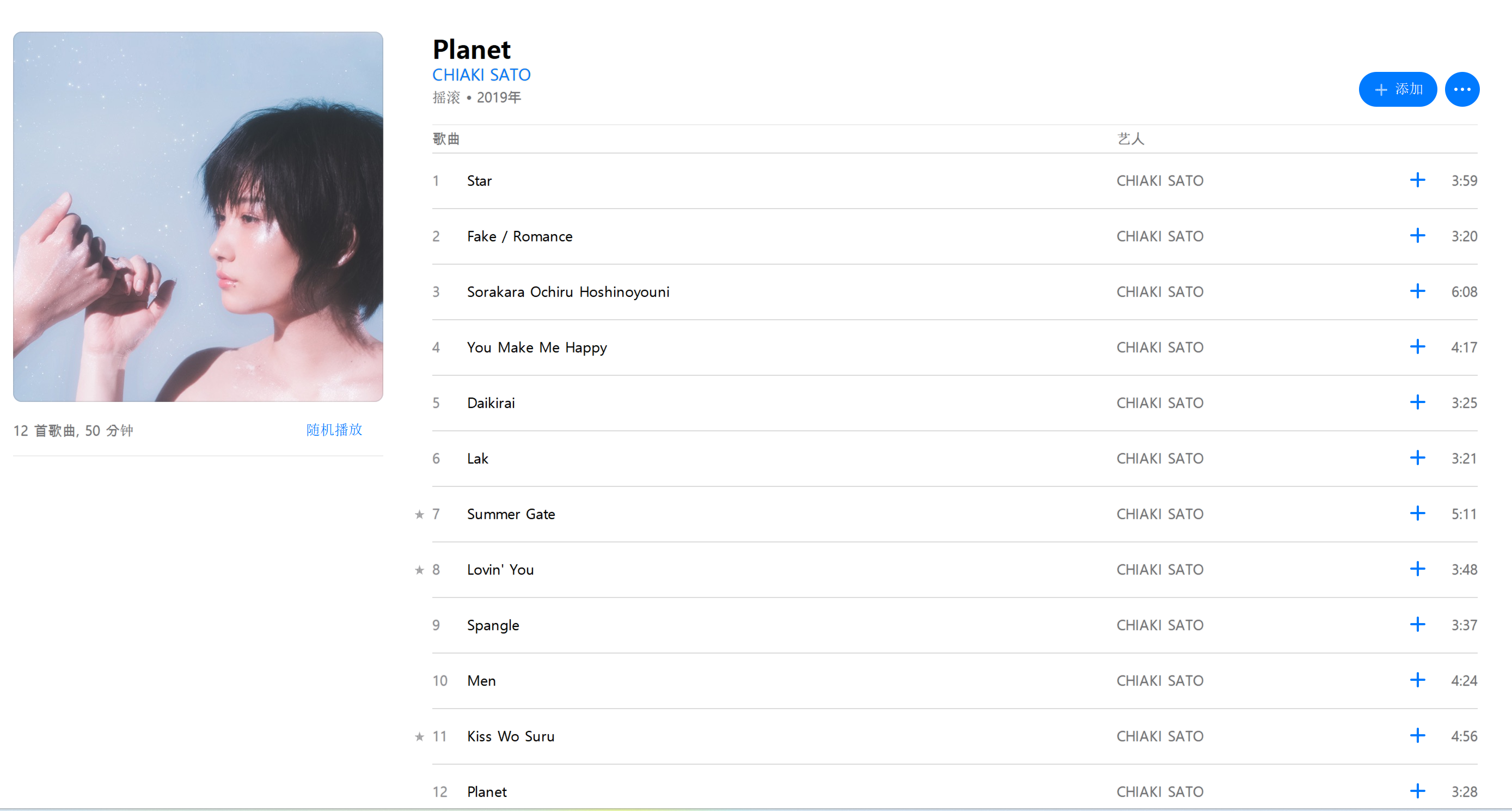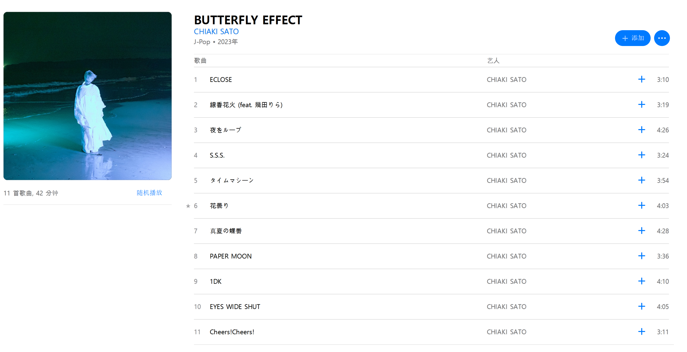 例如部分日文曲目,同一艺人不同专辑的曲目名称显示方式就已经不统一了。如图所示,专辑butterfly effect中track2,3,5,6,7的日语名称保留,而planet中track 2,5,10,11的日语都变成了罗马音。