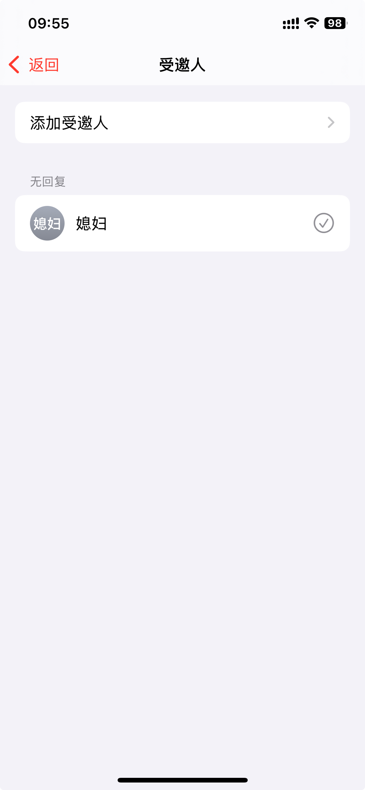 iPhone 上的日历中邀请他人,对方 Apple 账户非邮箱 ID 而是手机 ID,我这里显示无回复,而对方并未收到。