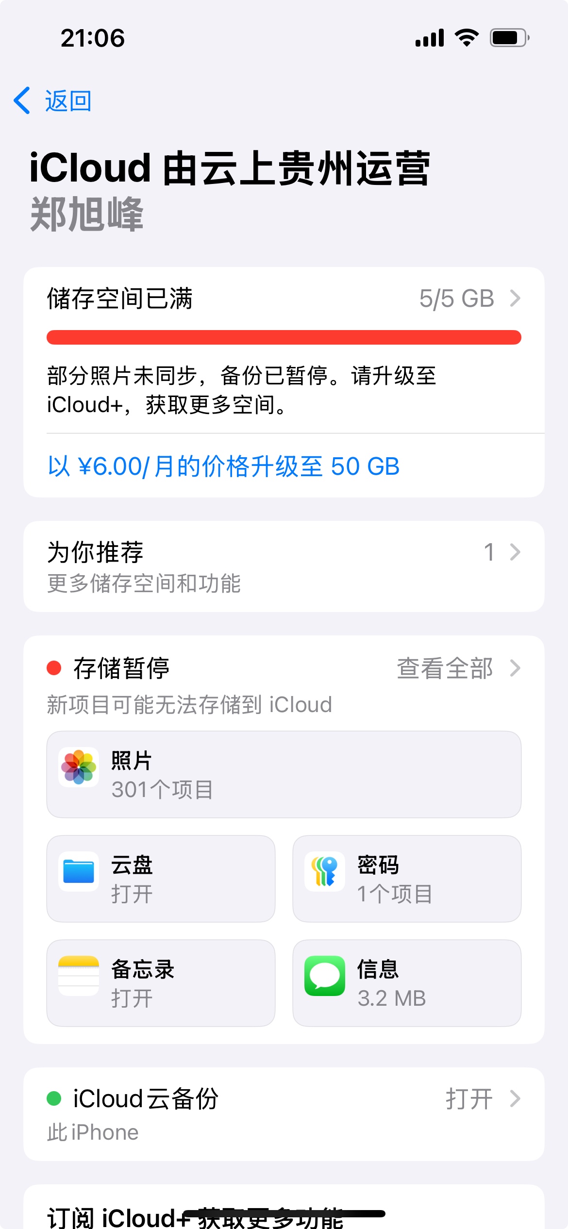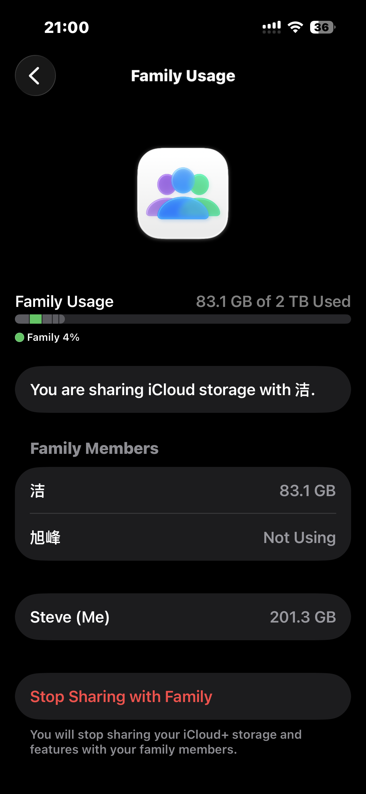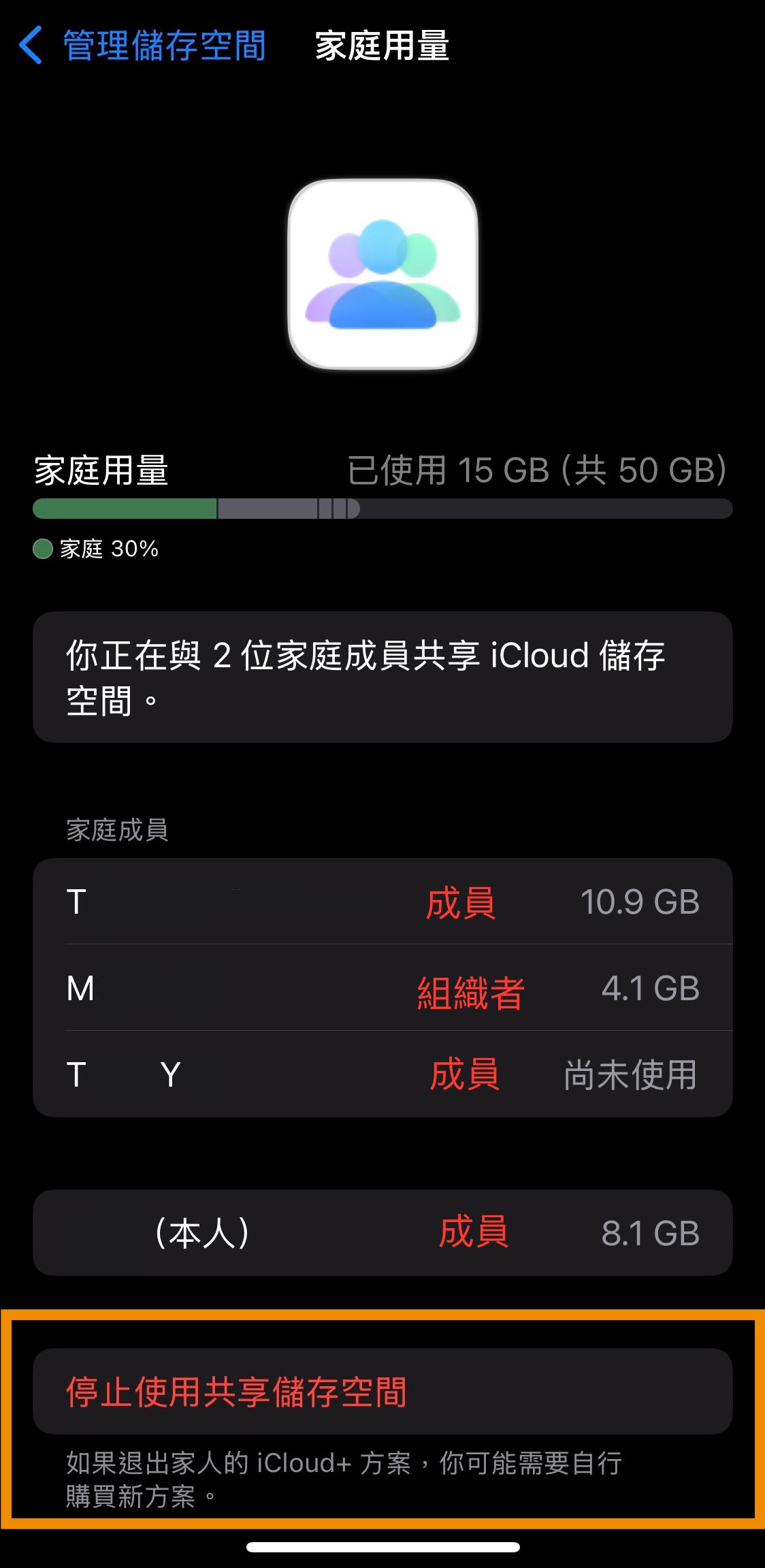 我将iCloud+共享给家人,在我的iPhone上也显示已经共享,另一个家人也使用上iCloud的空间,但为什么另一位未使用且还是显示5GB?