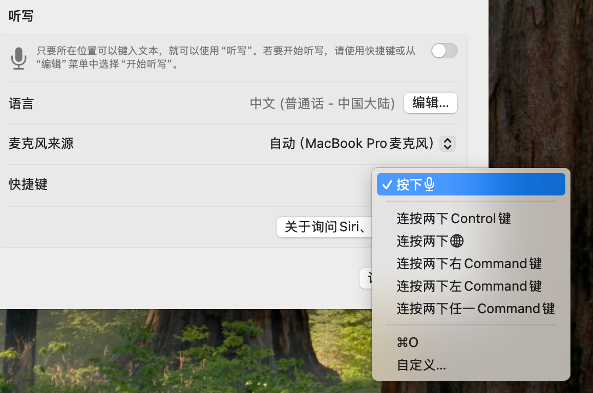 macbook m3max 的听写自定义快捷键过后怎么删除