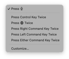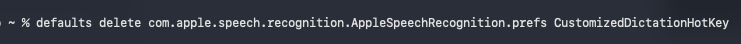 输入如下命令:defaults delete com.apple.speech.recognition.AppleSpeechRecognition.prefs CustomizedDictationHotKey