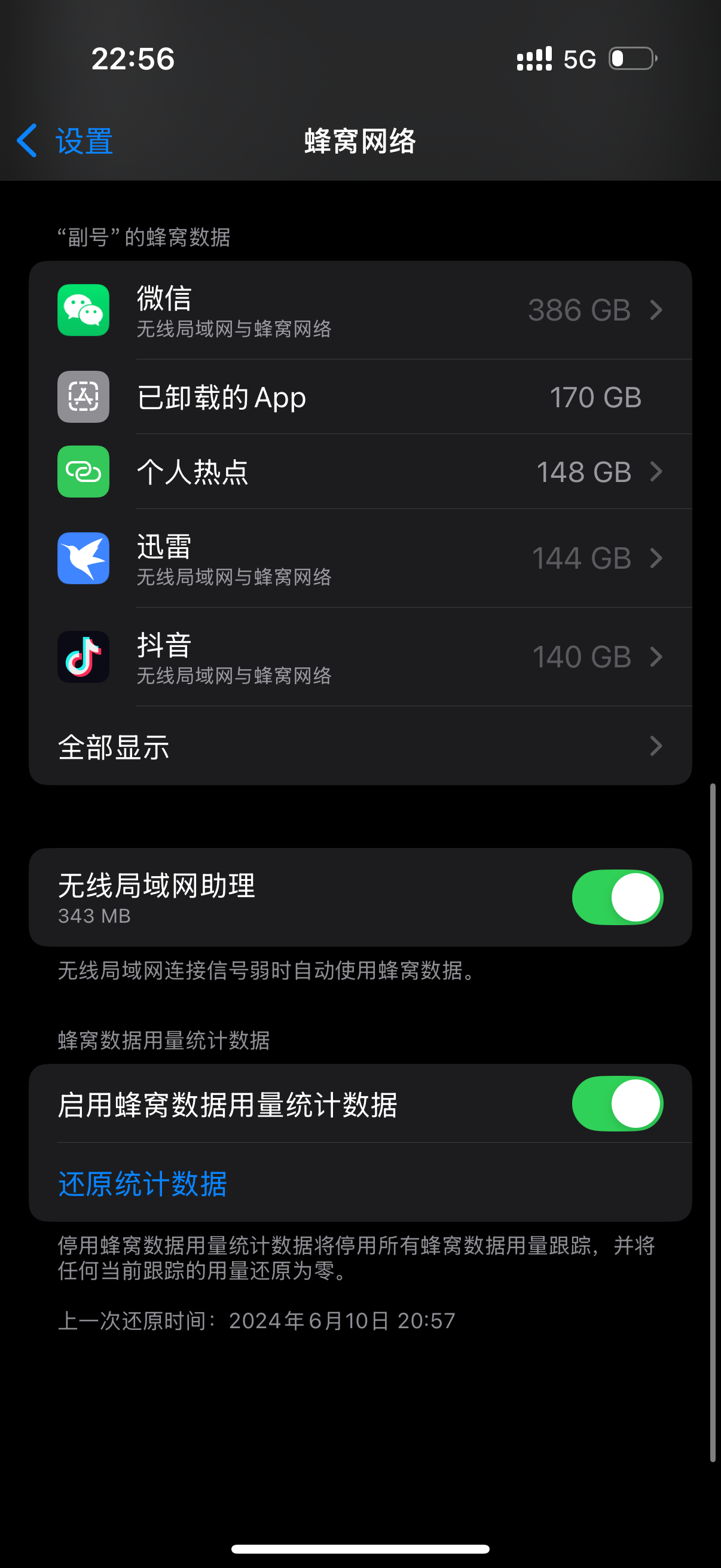 iPhone 16 Pro 查看当月流量使用情况记录查不到,只有一个总的软件流量,很是头疼!!