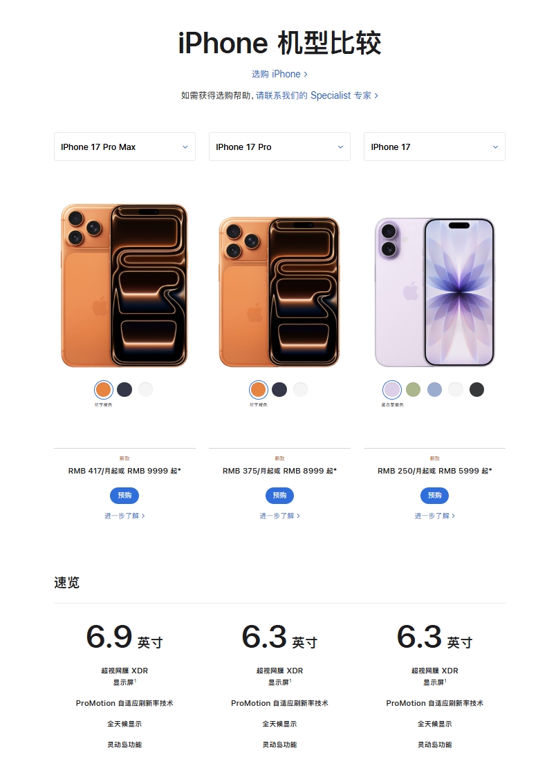 苹果iPhone 17和 iPhone 17 Pro 的promotion是一样的吗
