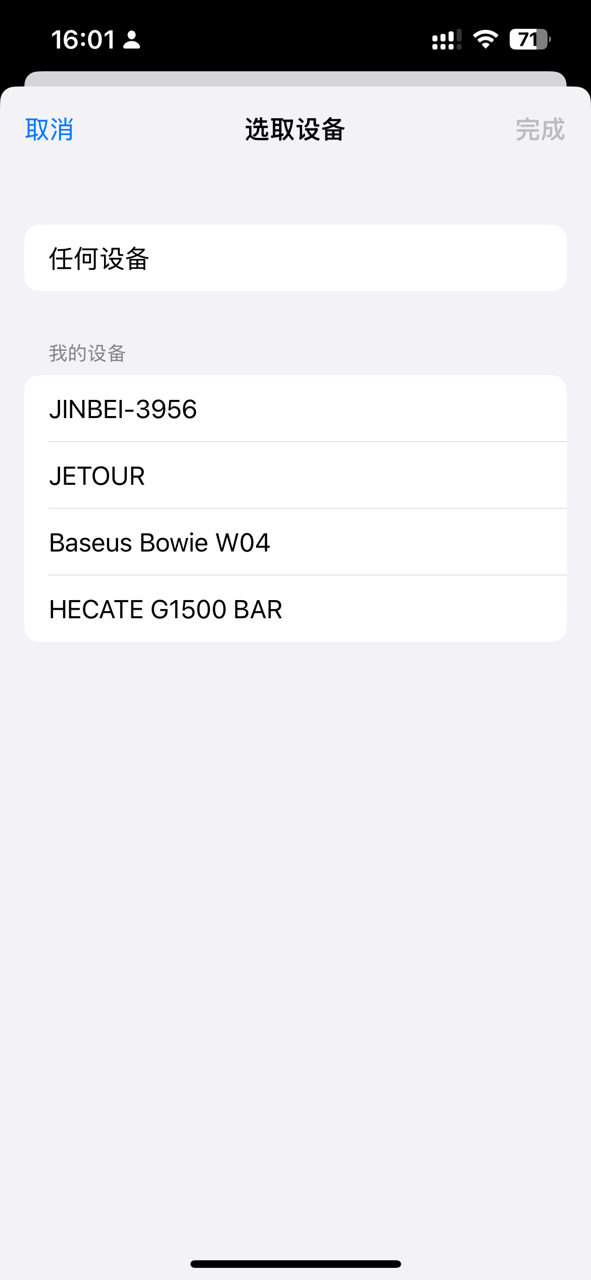 快捷指令可选择的蓝牙设备和蓝牙实际连接的蓝牙设备不一致,导致有些蓝牙设备选择不到