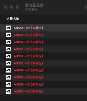 在安装了AutoDesk CAD 2025后,通过活动监视器发现后台会出现AdSSO-v2进程未响应的情况,会以较高频率弹出未响应弹窗。