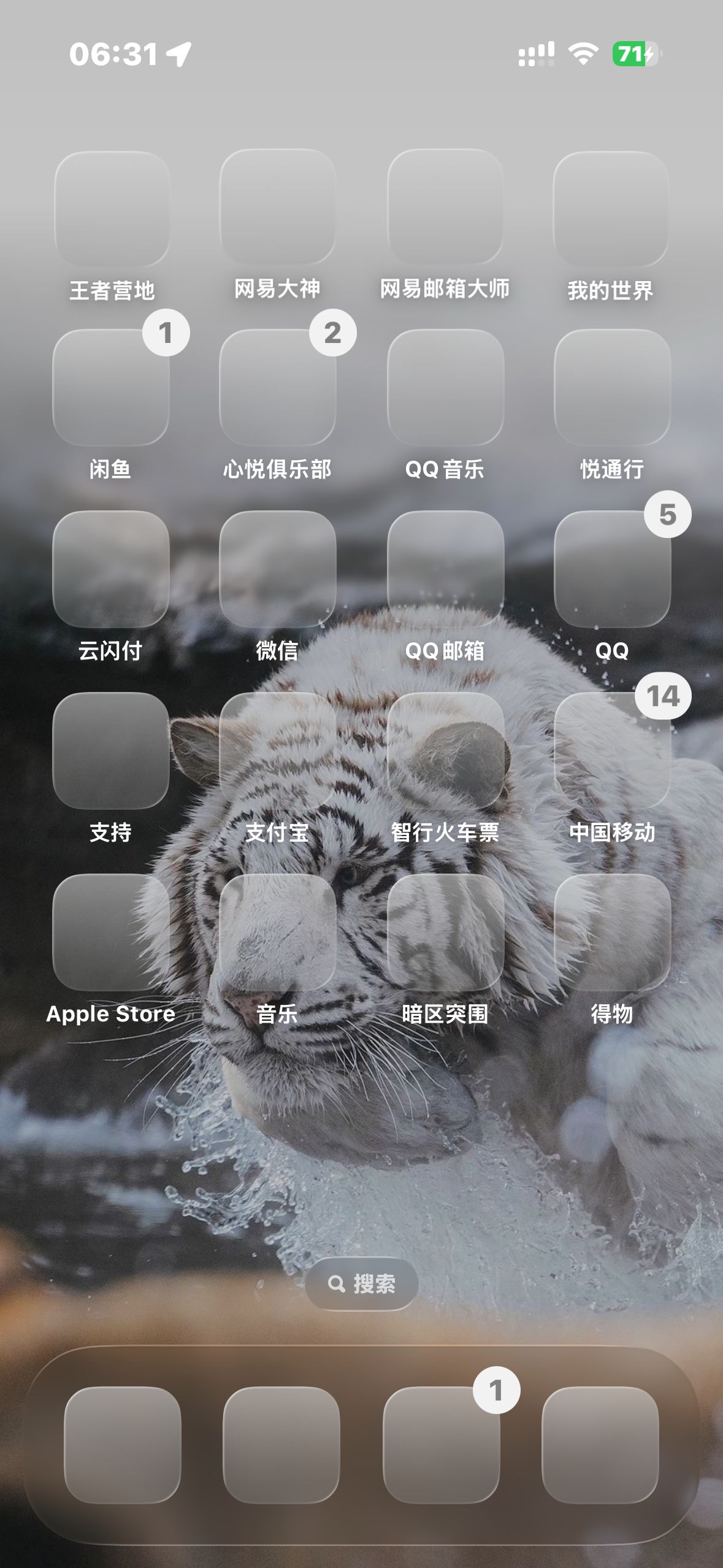 也好奇问: 透明图标的桌面最底部Dock快捷栏, 没有文字标识、图标透明的, 要是心急了, 找不到那个App, 那不就一个一个点开来看了?😂