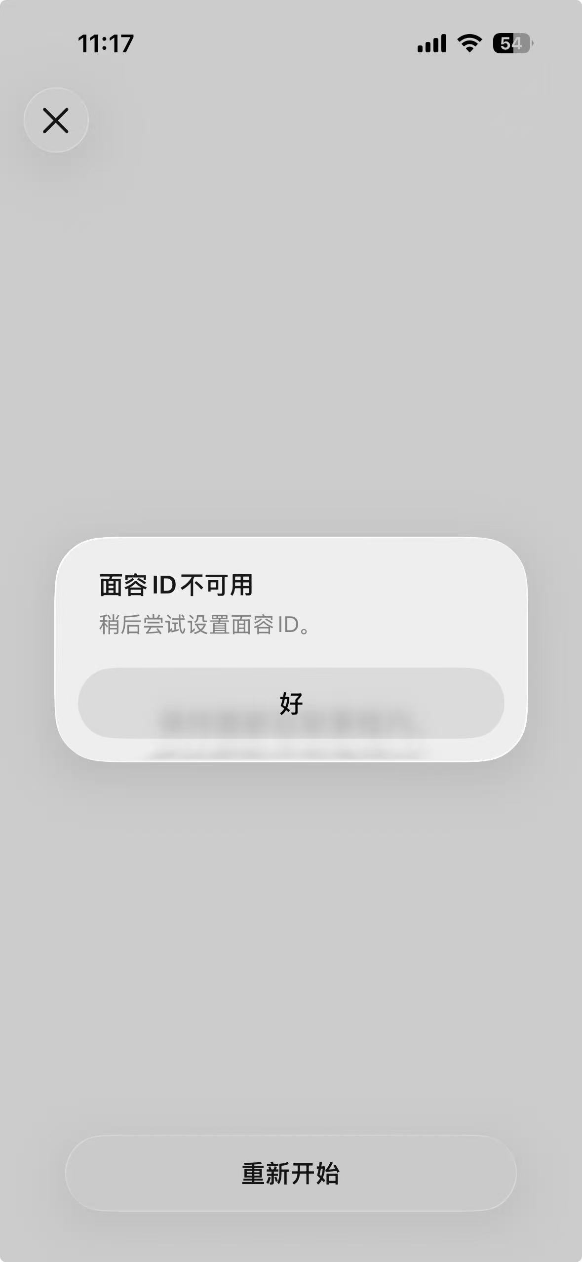 起初认为是发型脸型变化引起的识别问题,遂将面容识别关闭后重新设置,出现以上界面