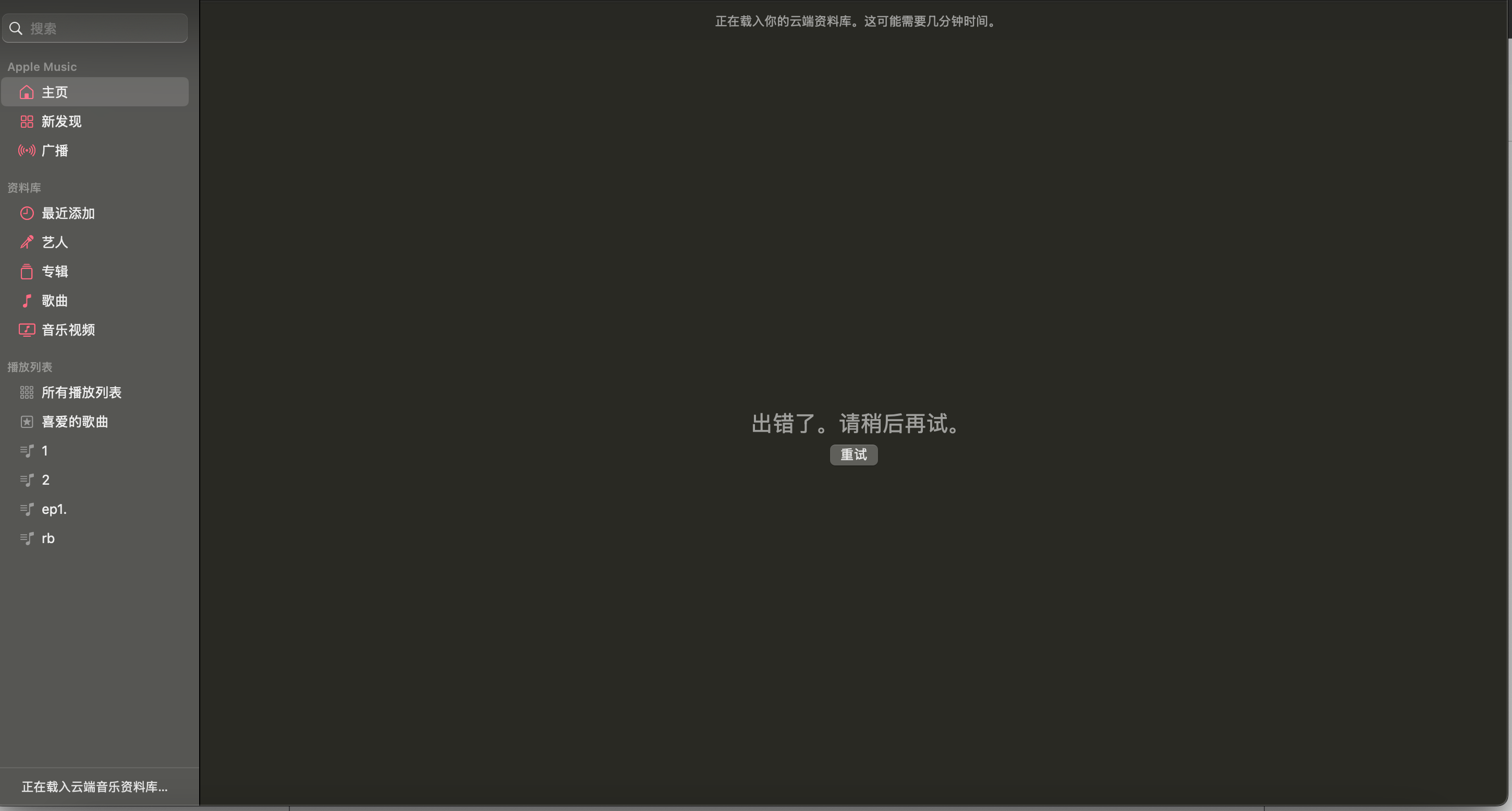 mac进入主页一直显示 出错了。请稍后再试。 这是为什么
