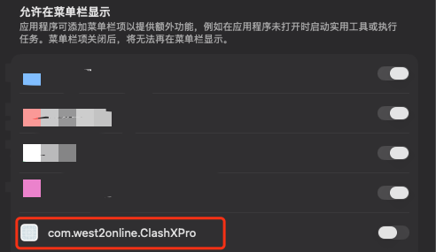 系统设置-菜单栏-允许在菜单栏显示 com.west2online.ClashXPro 已经卸载了还有