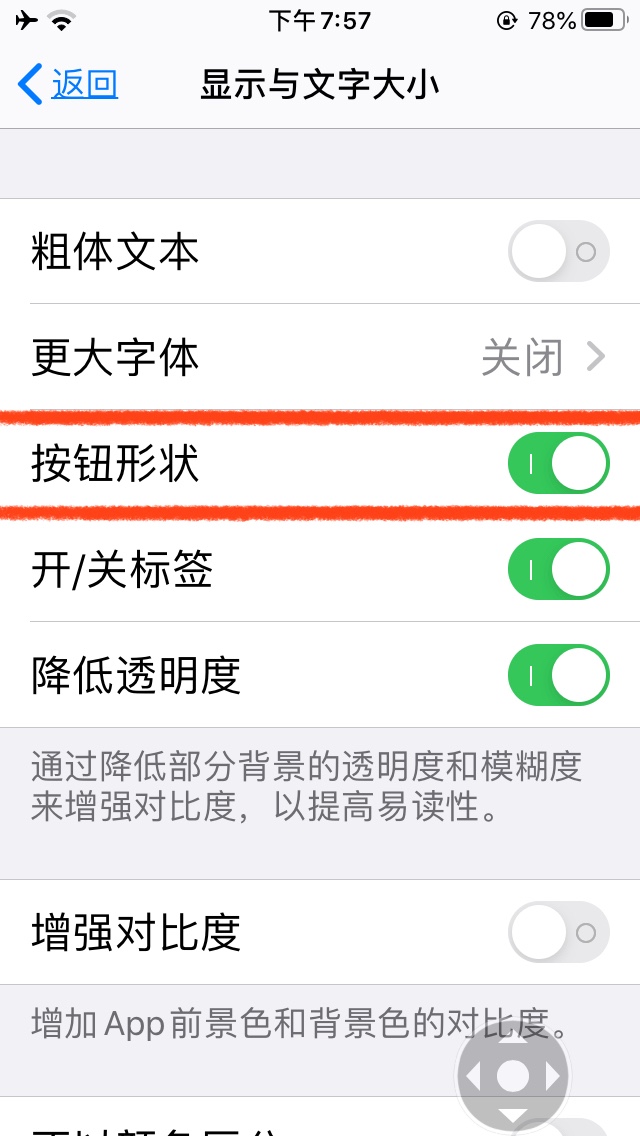关了 按钮形状 功能, 设置-辅助功能-显示与文字大小, 这功能以前还有左上角返回拟物化系统 大箭头, 后也渐渐变网页Html超链接样式了。(现在26系统也回归以前样式了, 但变圆形了)