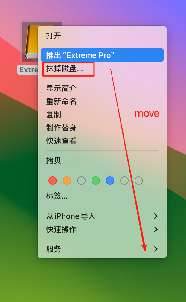 Mac 外接固态硬盘,鼠标右键后的推出按钮下面的抹除按钮,可否移动至菜单最西下方?