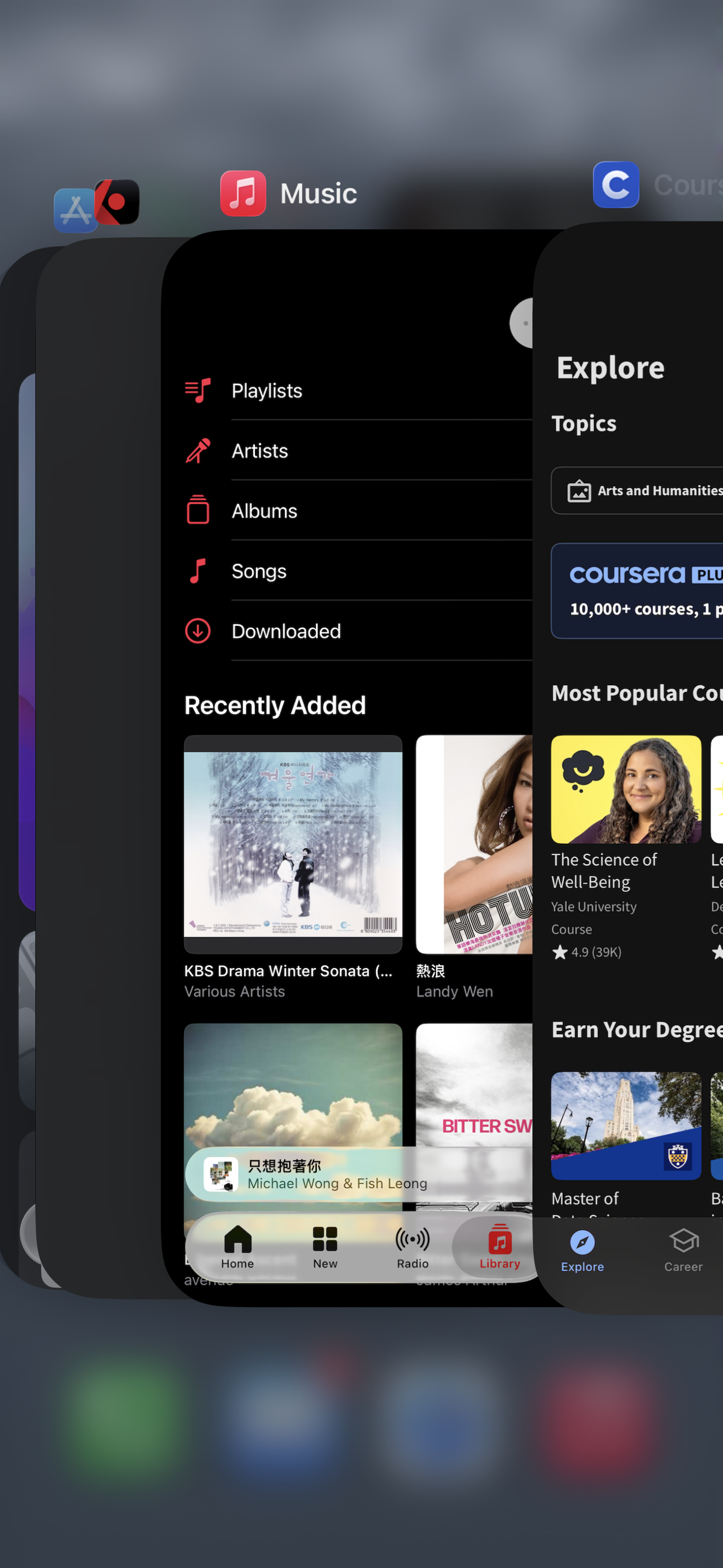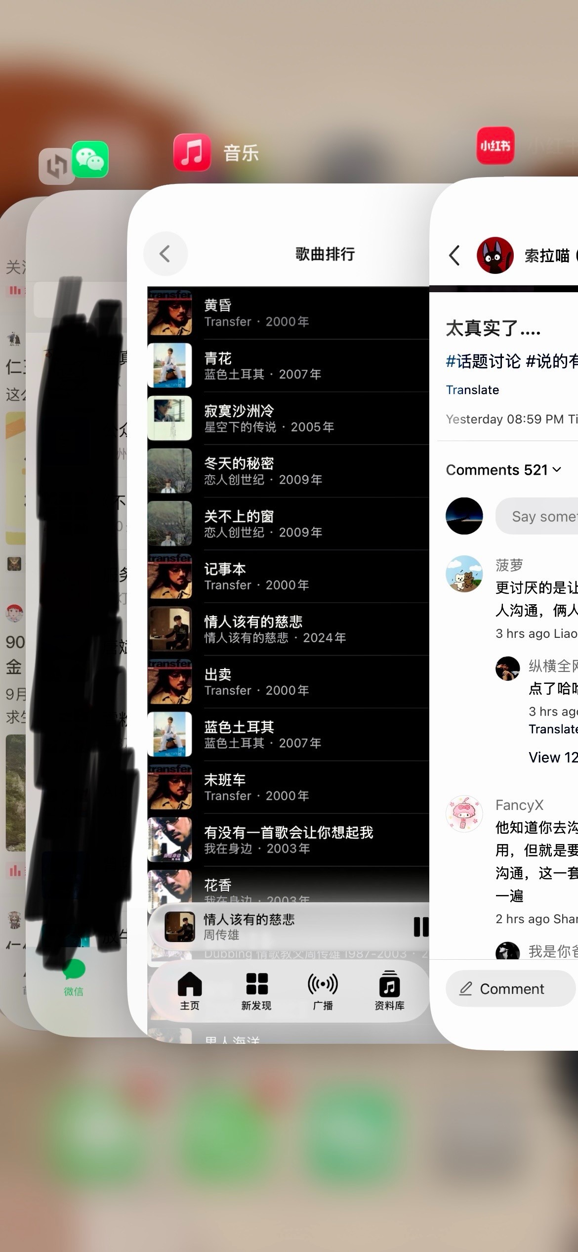 从其他软件回退进后台,会发现apple music背景颜色显示错误,似乎已经存在好久了。