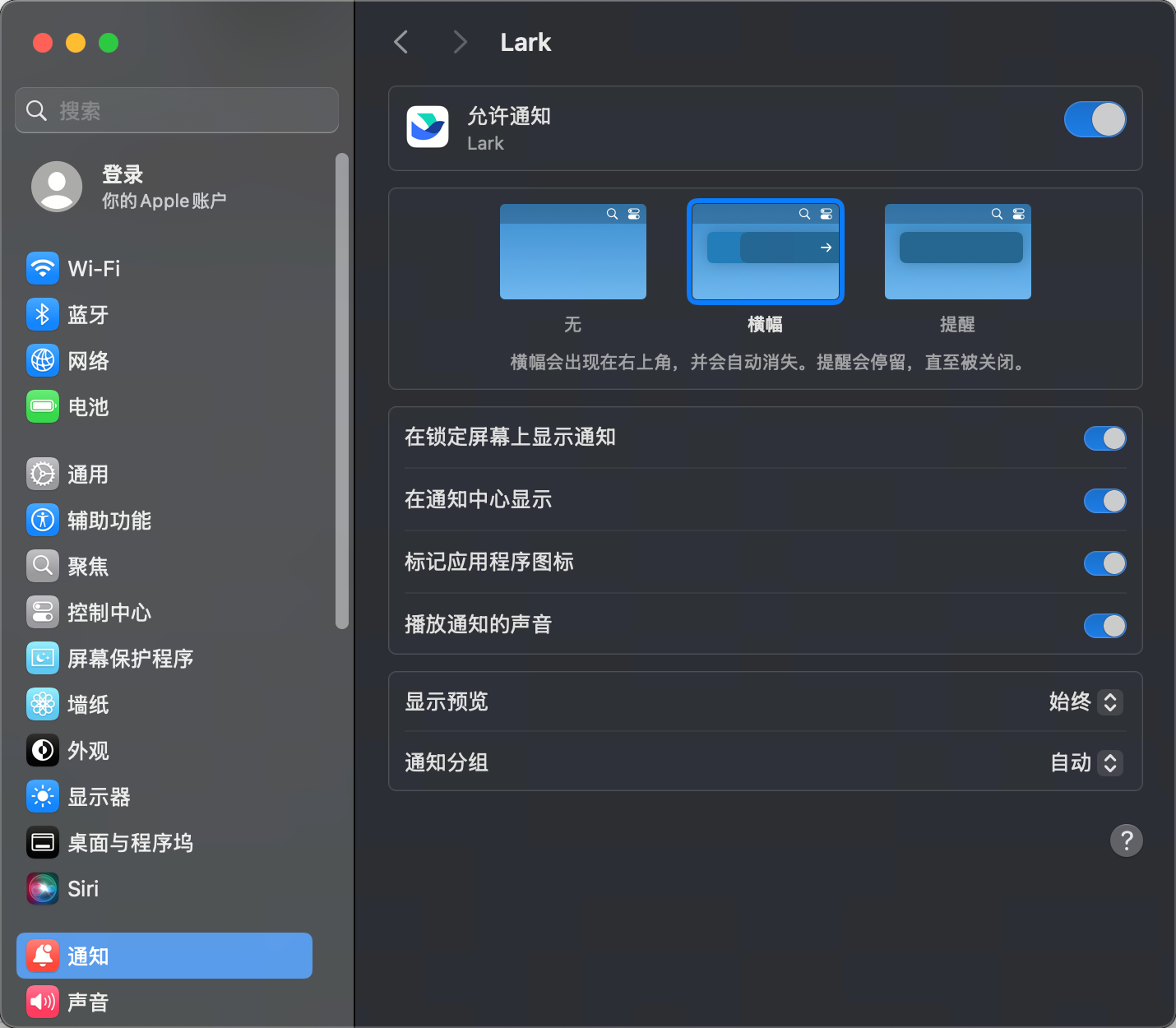 我的MacBookPro已经打开了应用在锁屏后的通知权限,但是一旦屏幕锁定,就不发送通知了。