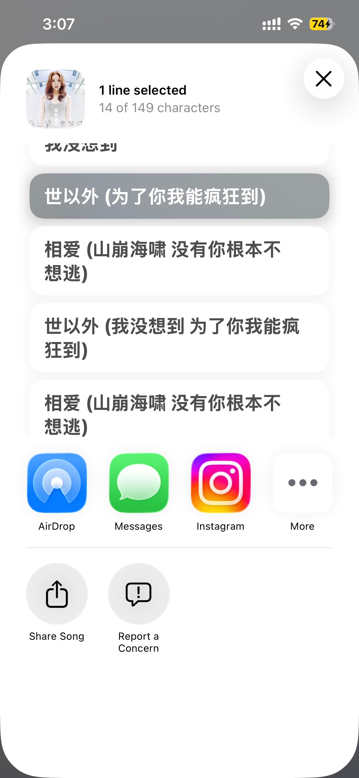 iOS 26版本下的Apple Music中文歌曲的歌词bug