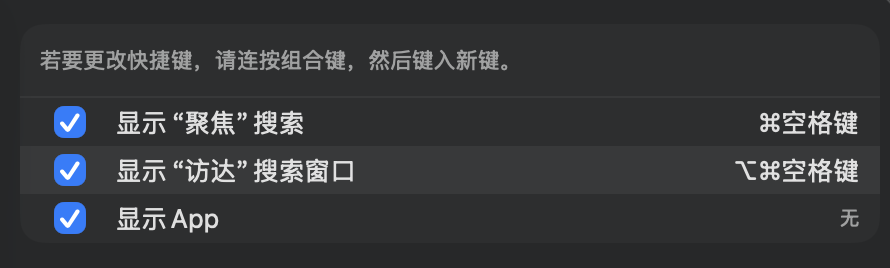 Mac 系统设置中的键盘快捷键里面设置都是没问题的吗? 前面有一个勾一定要点上。