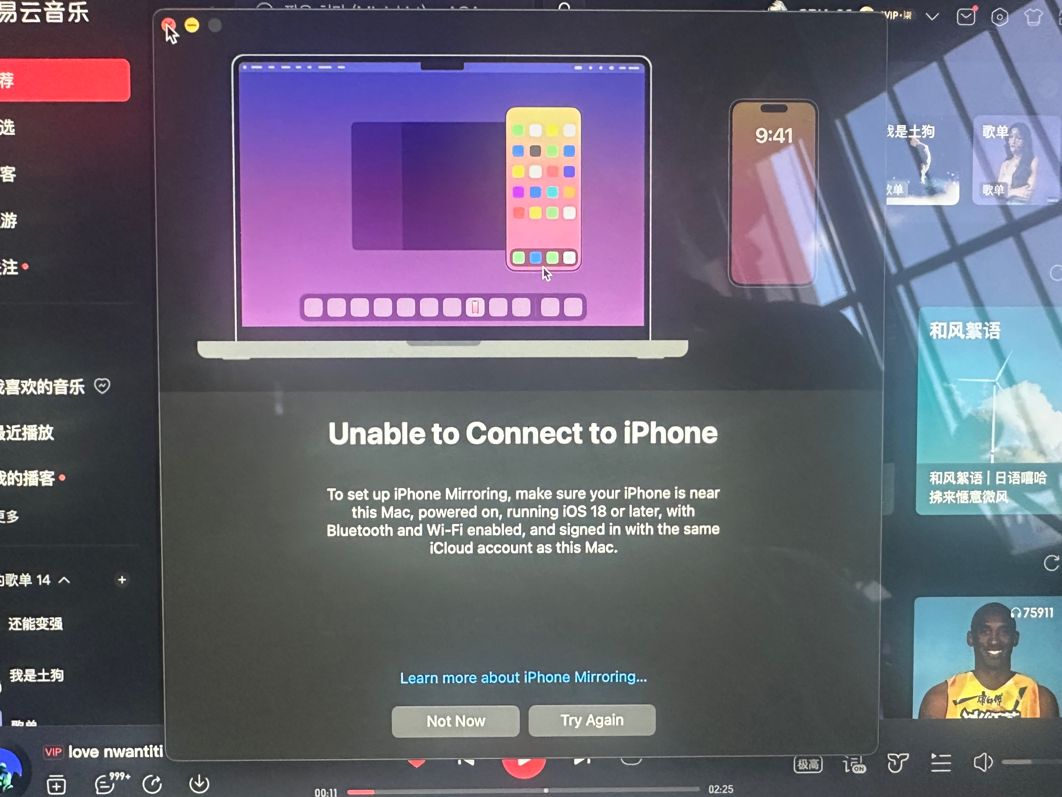 无法在MacBook Air上使用iPhone镜像连接iPhone 14 Pro