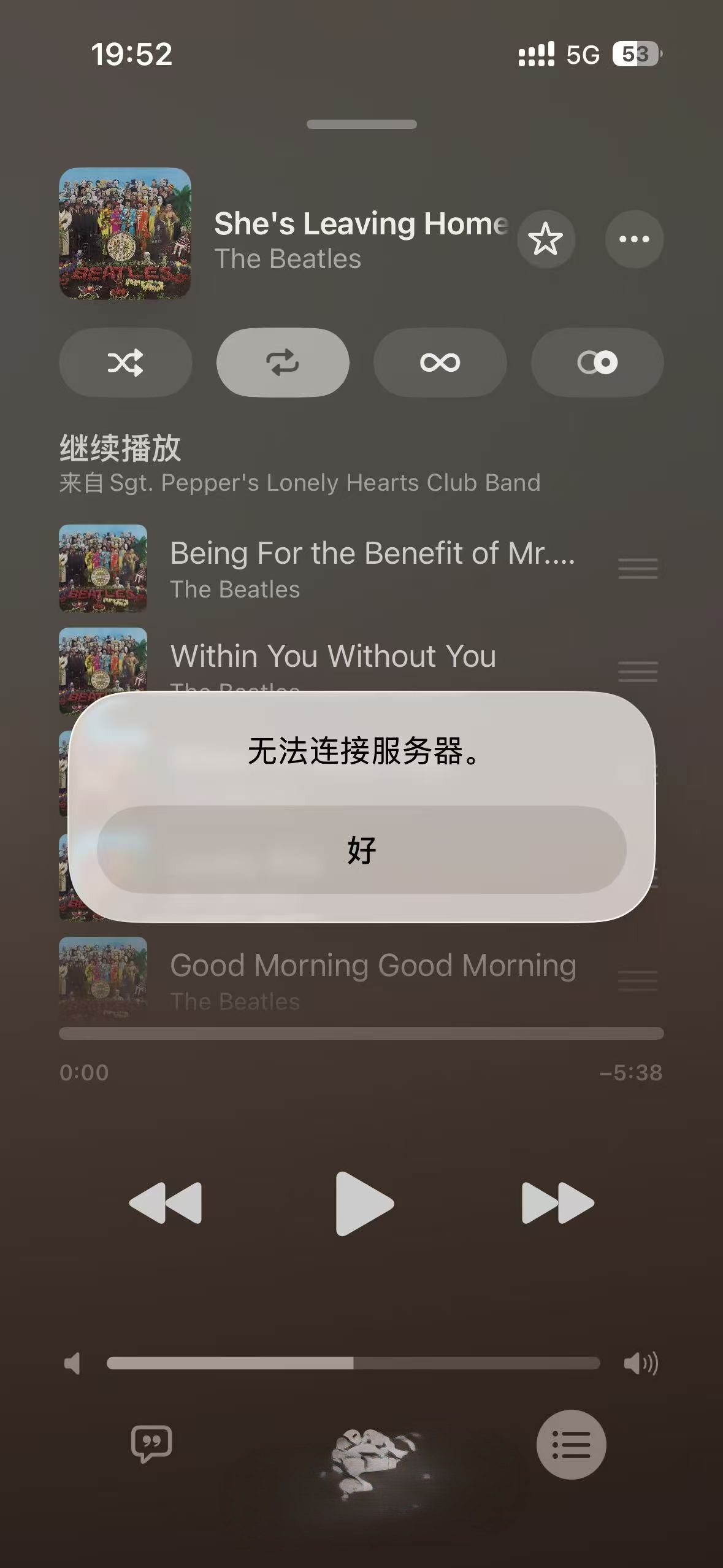iOS 26.0.1的iPhone上的Apple Music无法连接服务器