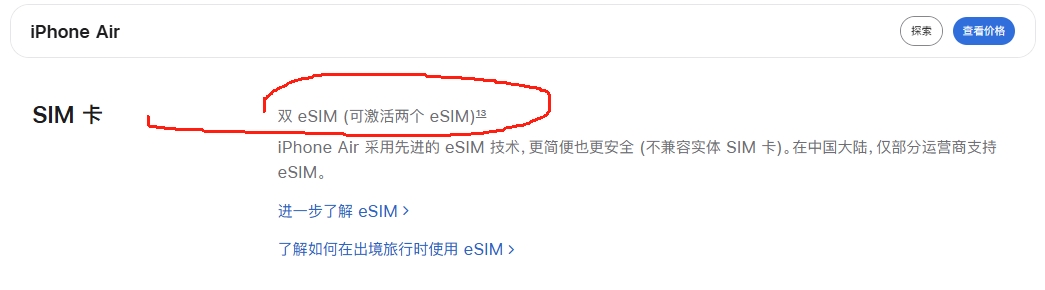 作为现在拥有中国移动和中国电信各一张sim卡的用户,我想知道即将迎来的带两个esim的iphone air,是否可以同时使用一个中国移动的esim和一个中国电信的esim,这个问题很重要,这个双网络运营商使用需求决定我接下来要更换哪个型号的iphone