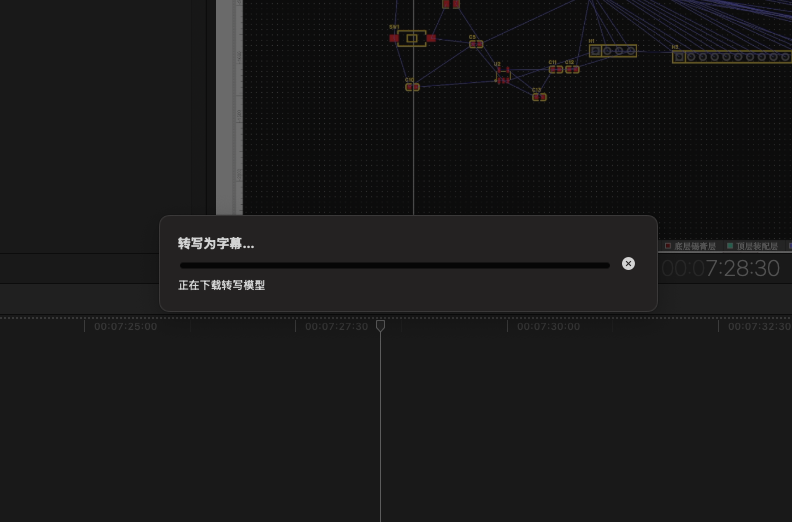 在macOS V15.5,Final Cut Pro V11.1版本时,使用“转写为字幕”自动创建字幕时,由于首次使用,需要下载转写模型。但是始终无法下载,下载进度条一直卡在0%。放置一整晚也没有任何进展。