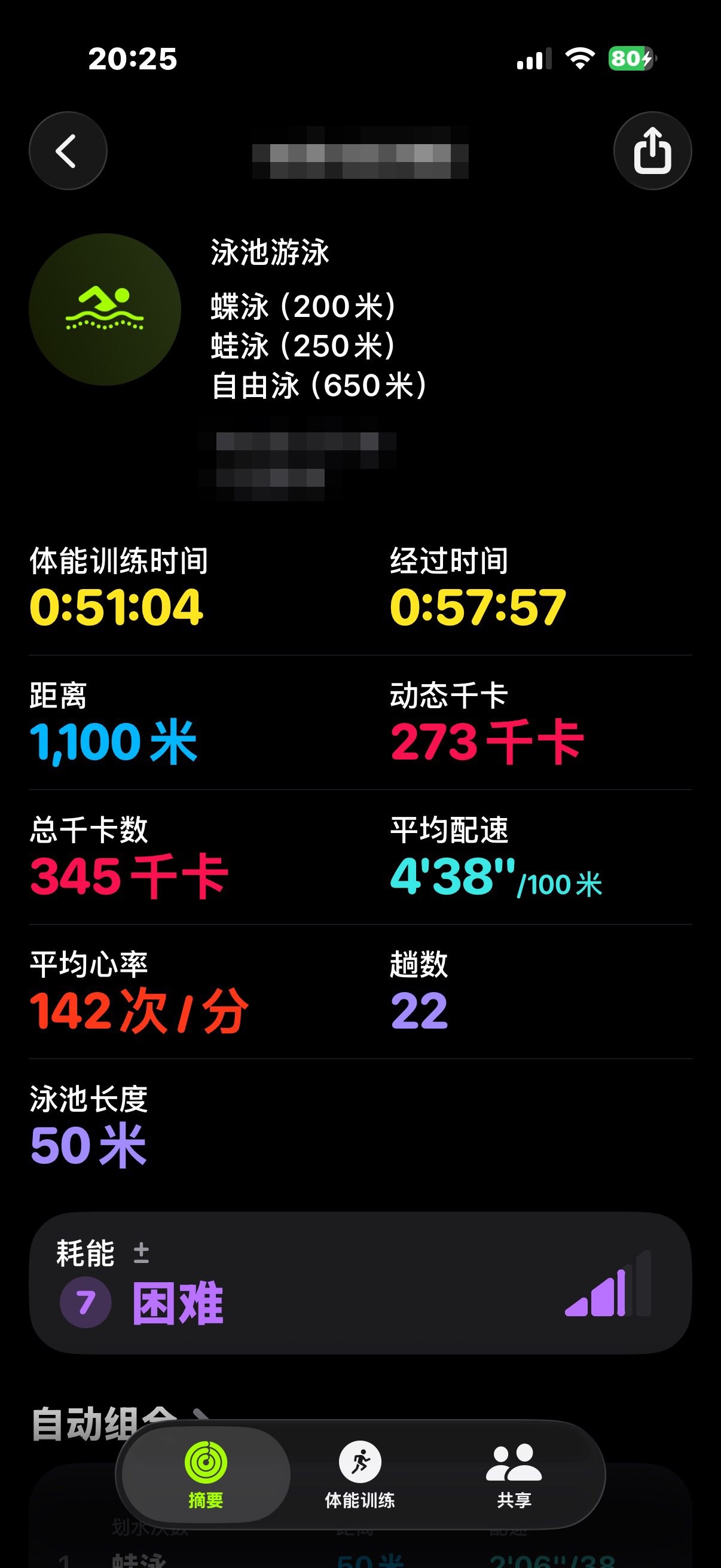 设备是Apple Watch Series 10,系统为WatchOS26,我并没有进行蝶泳,然而却记录了200m的蝶泳。并且在更新WatchOS26系统后多次出现过游泳距离多记录的情况。