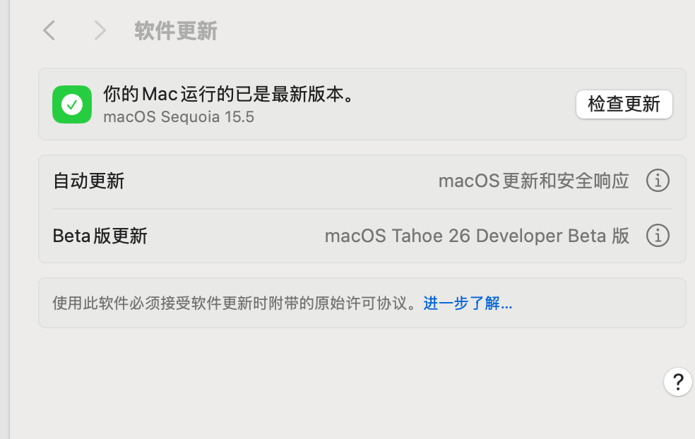 我在软件更新中点击检查更新, 提示已经是最新版本 15.5, 2021 Mac Pro 16 Apple M1 Pro