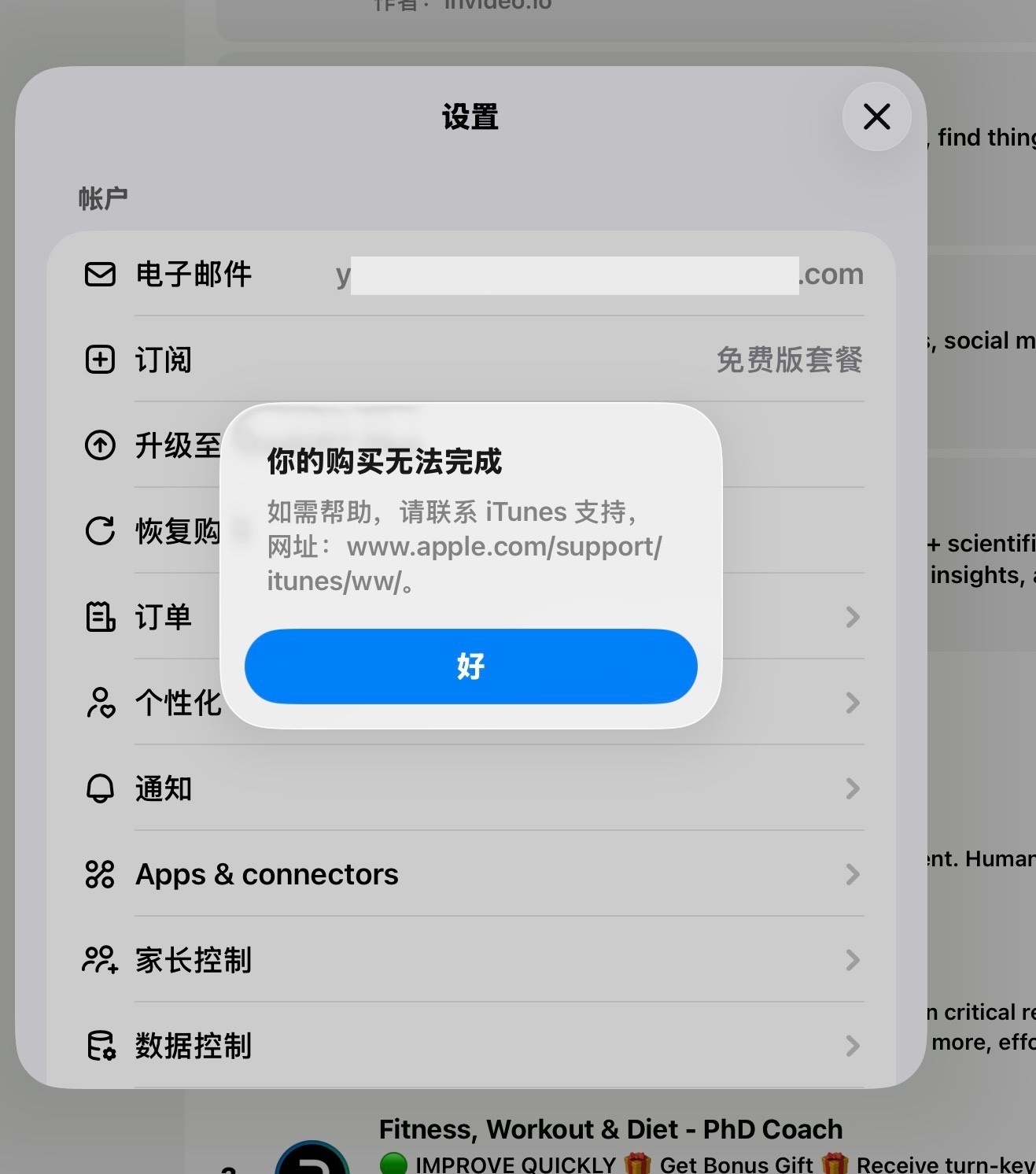 我的美区账号在完成chatGPT plus的订阅时,提醒我"你的购买无法完成"