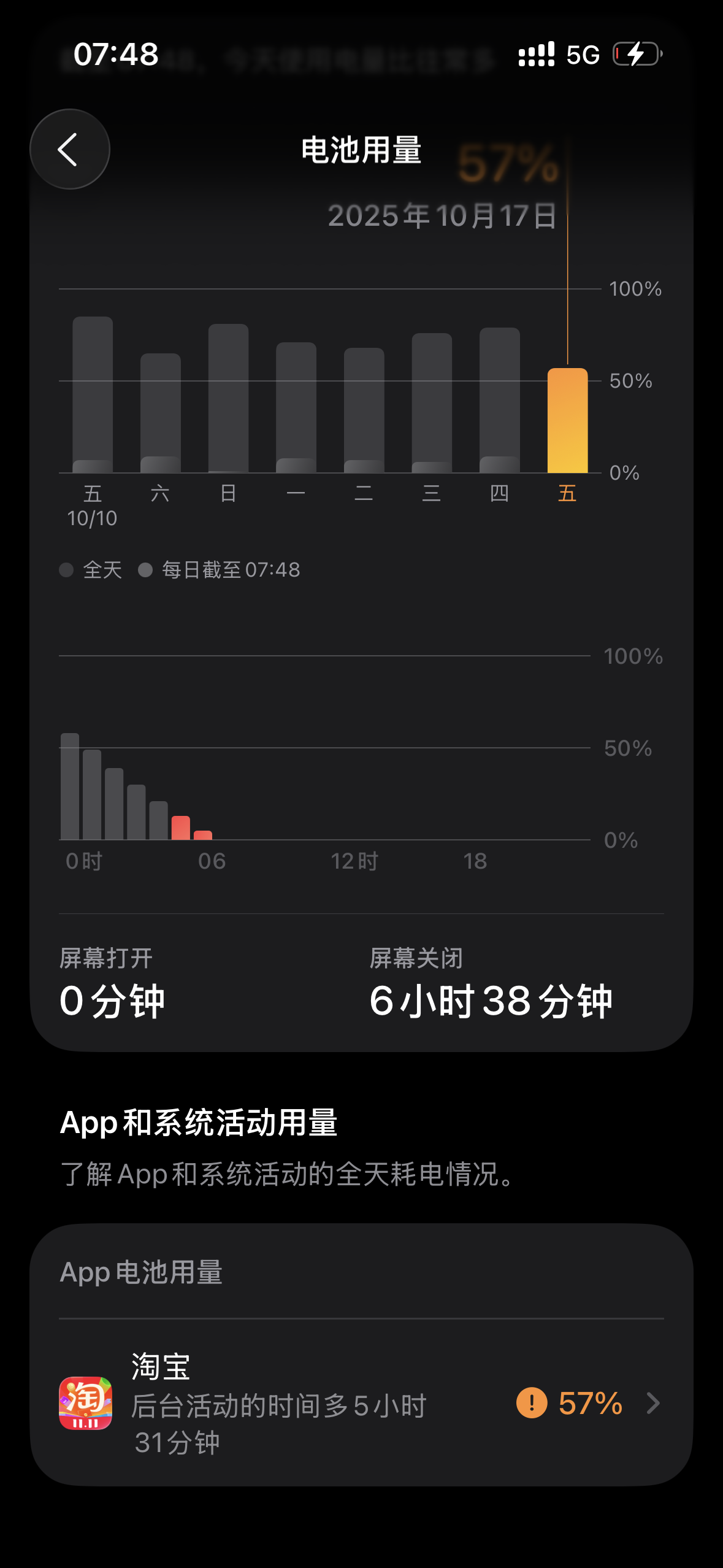 熄屏后淘宝应用一直耗费手机电池,系统没有及时终止该进程。