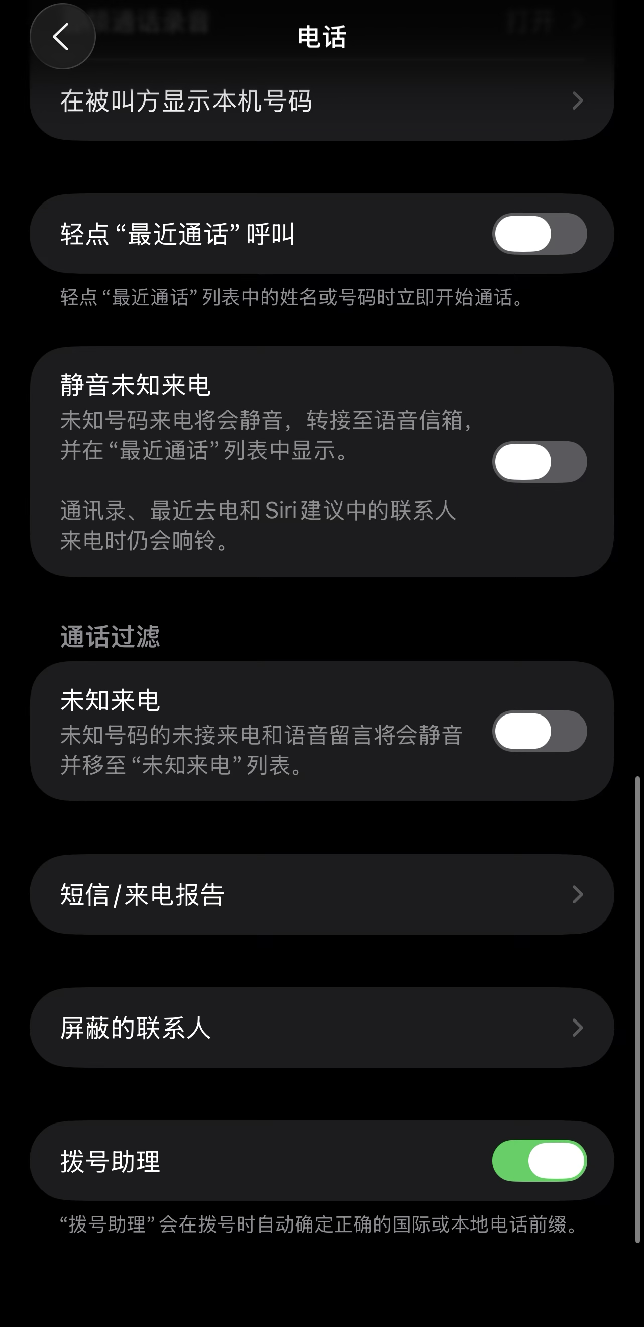 2.修改后重启「电话」应用,功能入口可能恢复‌