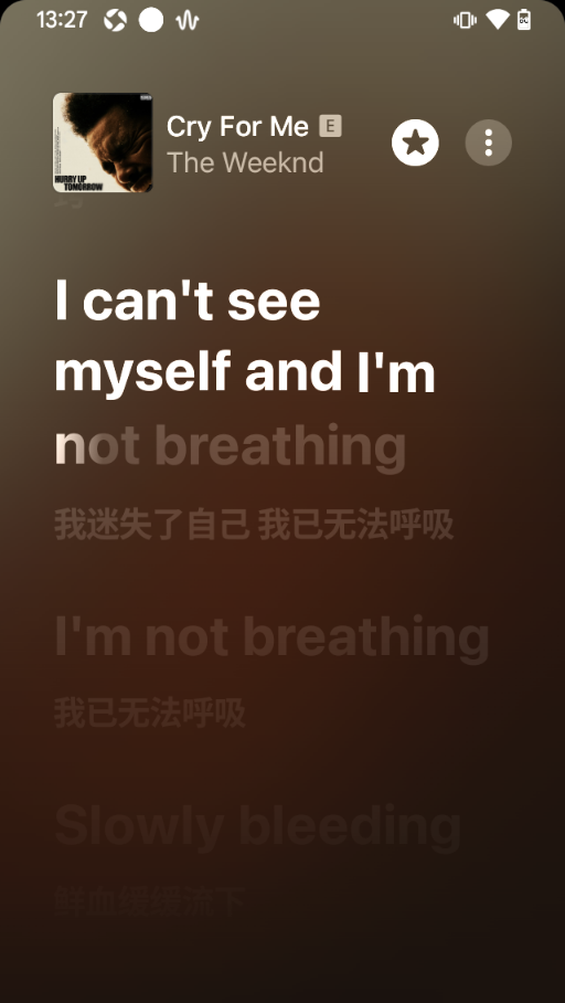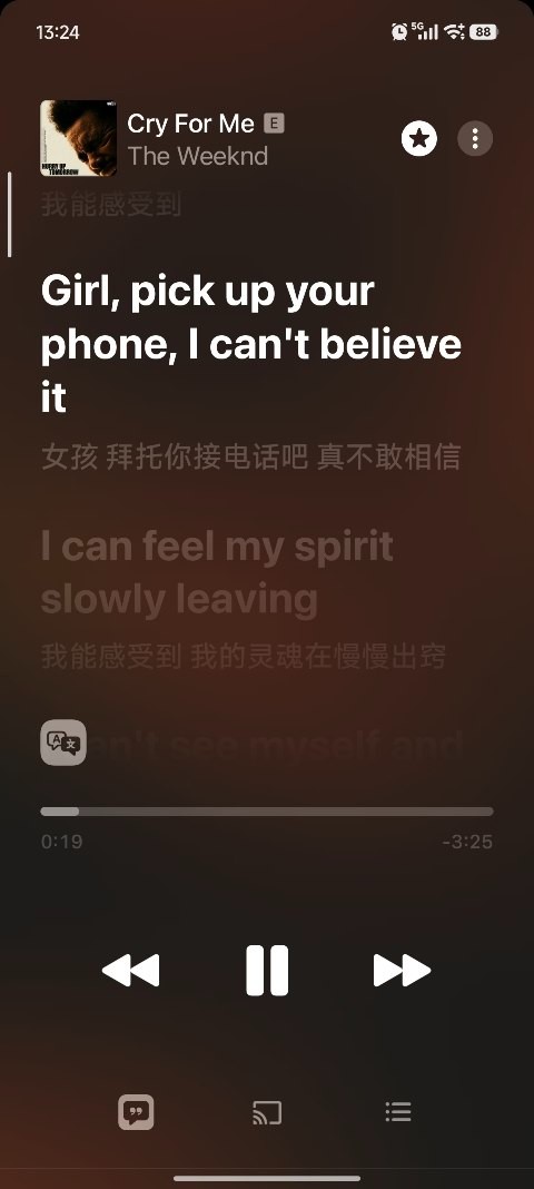 [标题经过版主编辑] 原标题: 安卓端Appl Music软件歌词在小米14设备上无法展示逐字歌词
