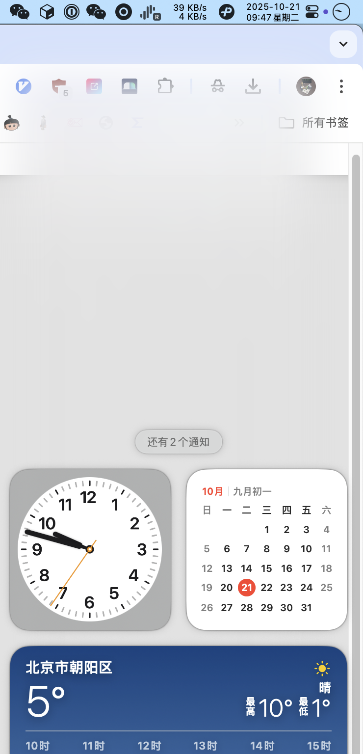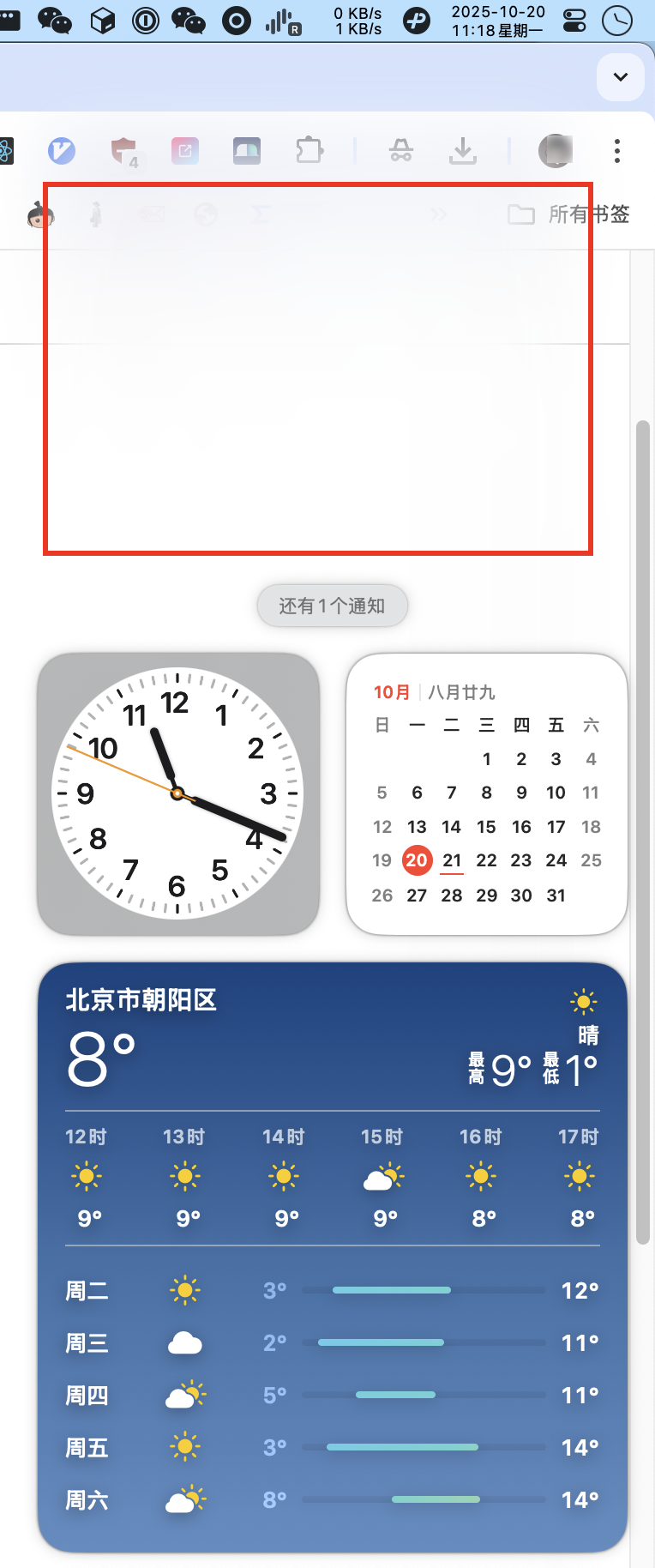 macOS 打开通知中心后,上方是空白的(图中红框区域),触发条件未知,且已经持续了几个大版本了。尝试重启通知中心无效,需要重启电脑才行。
