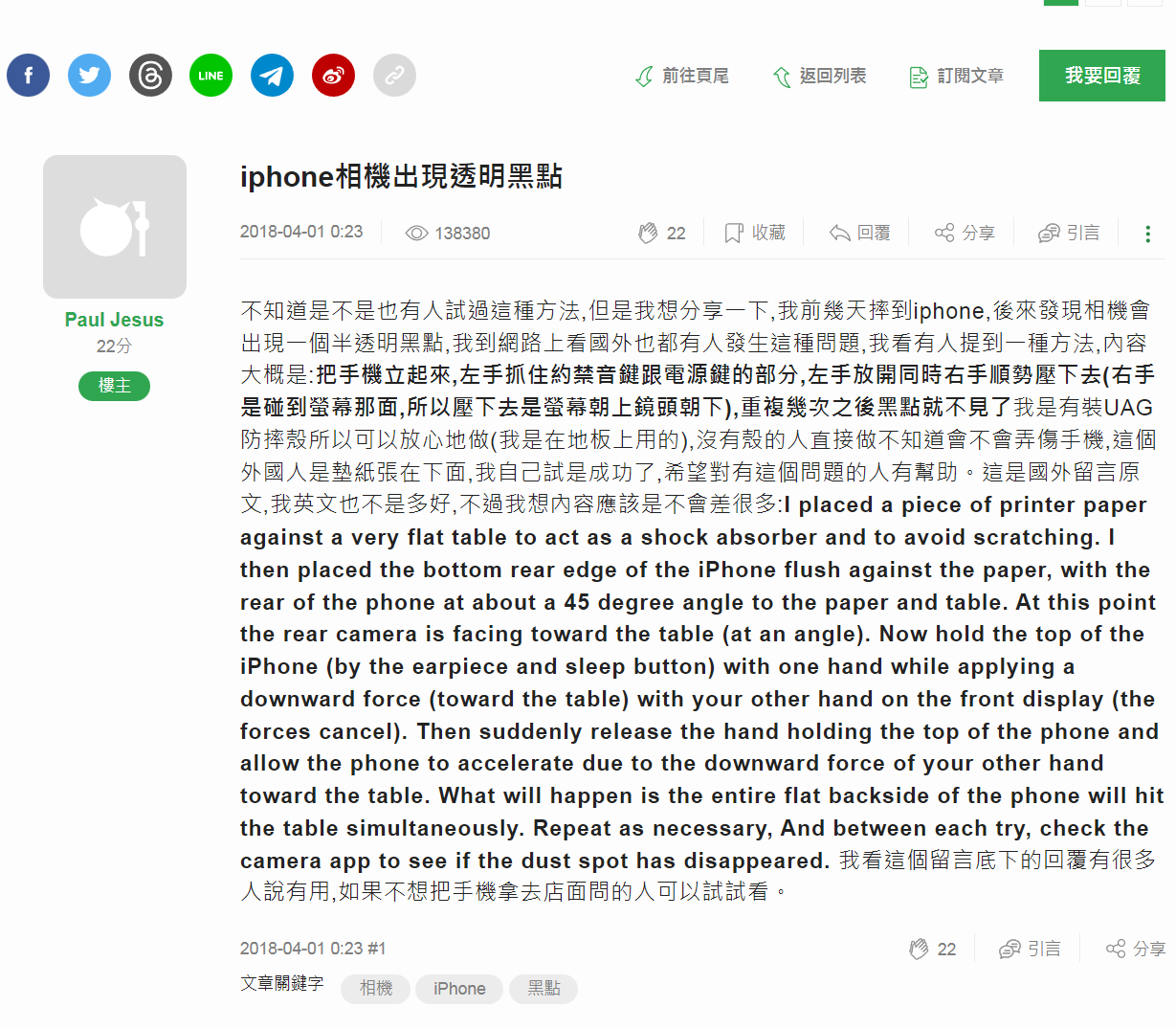 使用了几年的手机,期间 有摔到过地上,最近开始发现拍照焦距拉大到3倍及以上,屏幕会出现黑点,以为坏了,但是在网上找到一个方法,居然解决了,可以不用去专卖店了,有同样问题的可以尝试下