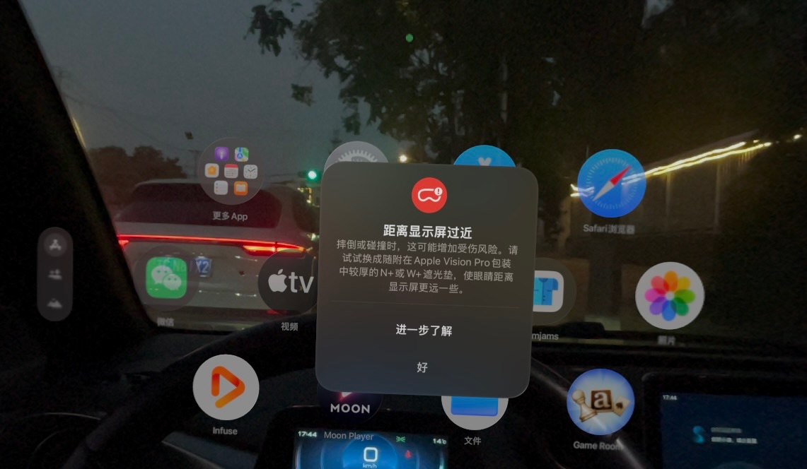 我的vision pro买来一年多了,每次戴上都会提示“距离显示器过近”提示,点击“进一步了解”就跳转到网页,点击“好”关闭。