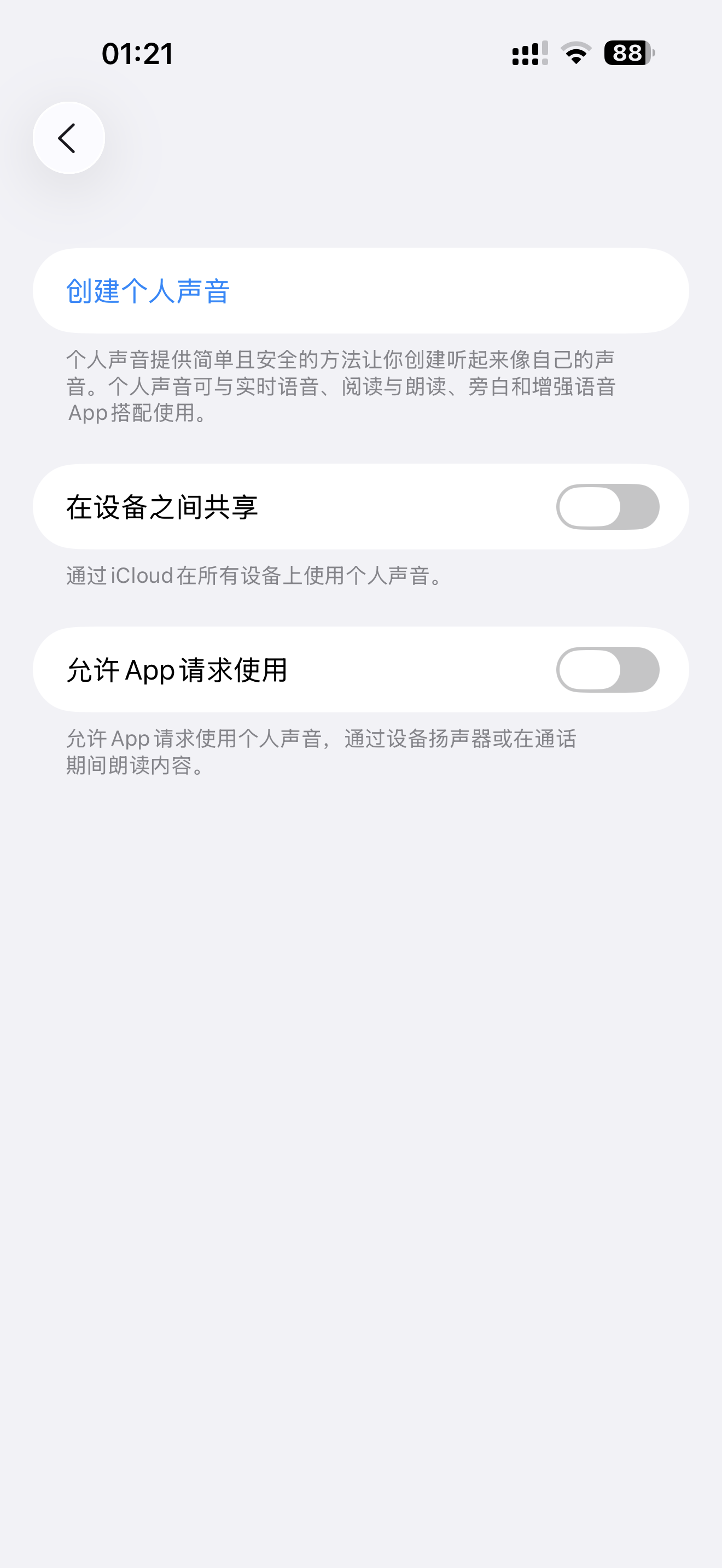在iOS 26.0.1的iPhone中找不到录制的个人声音