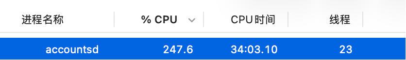 MacBook Air 进程 Accountsd 占用 CPU 过高