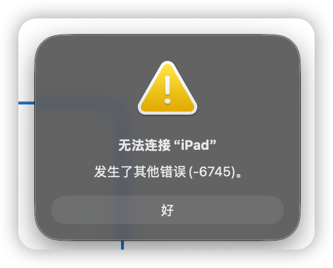 M1 mac电脑连接 ipad air11 提示“发生了掐错误(-6745)