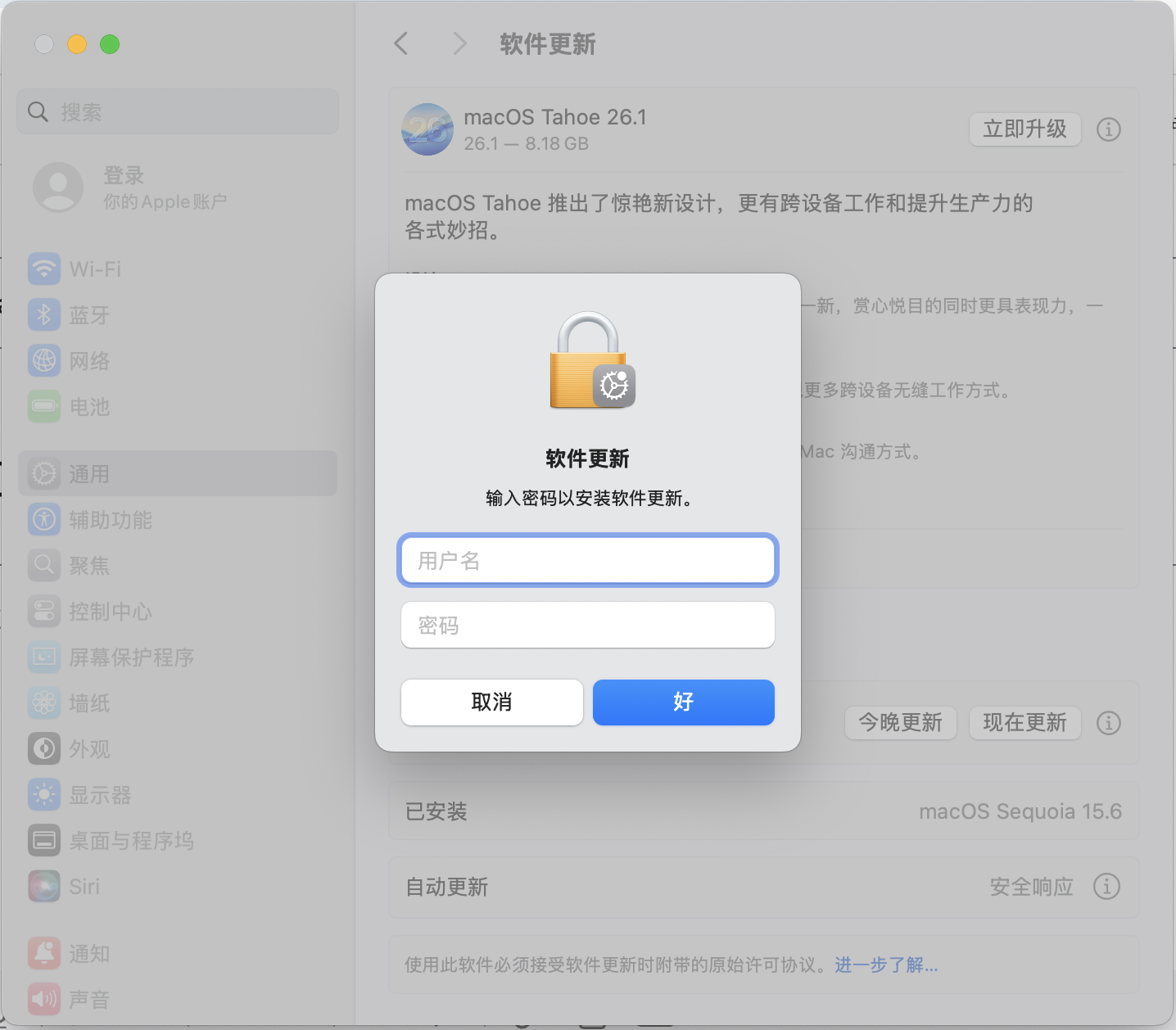 我的MacBook“软件更新”时一直提示要输入账号和密码,无法继续!但是我确认我的账号密码并未输入错误