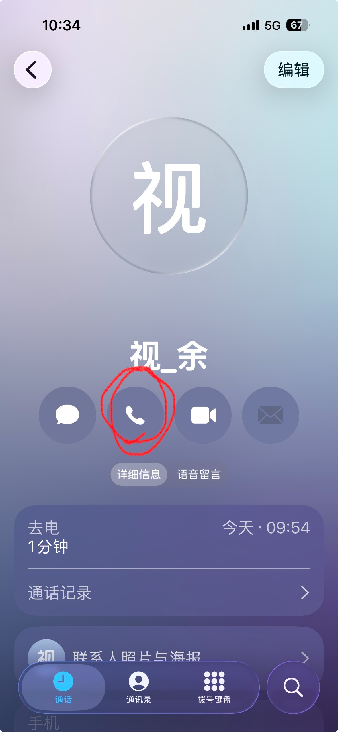 iphone14pro,IOS26版本,在通讯录个人详情页面,点下图中的拨号键,竟然是跳转到微信应用。有录了个视频,没法上传